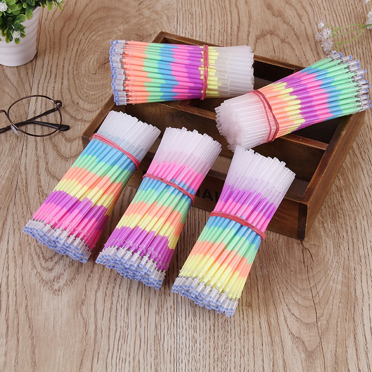 В комплект входит 48 шт. флуоресцентная Заправка для гелевой ручки, каждый из которых поставляется в 6 цветах: зеленом, синем, розовом, фиолетовом, желтом и оранжевом.