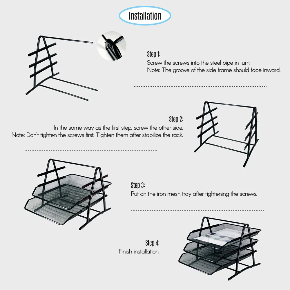 Тройной лоток для файлов из металла, с короткой и компактной конструкцией, достаточно прочный для офисных файлов, и это поможет вам сэкономить время и повысить эффективность работы.
