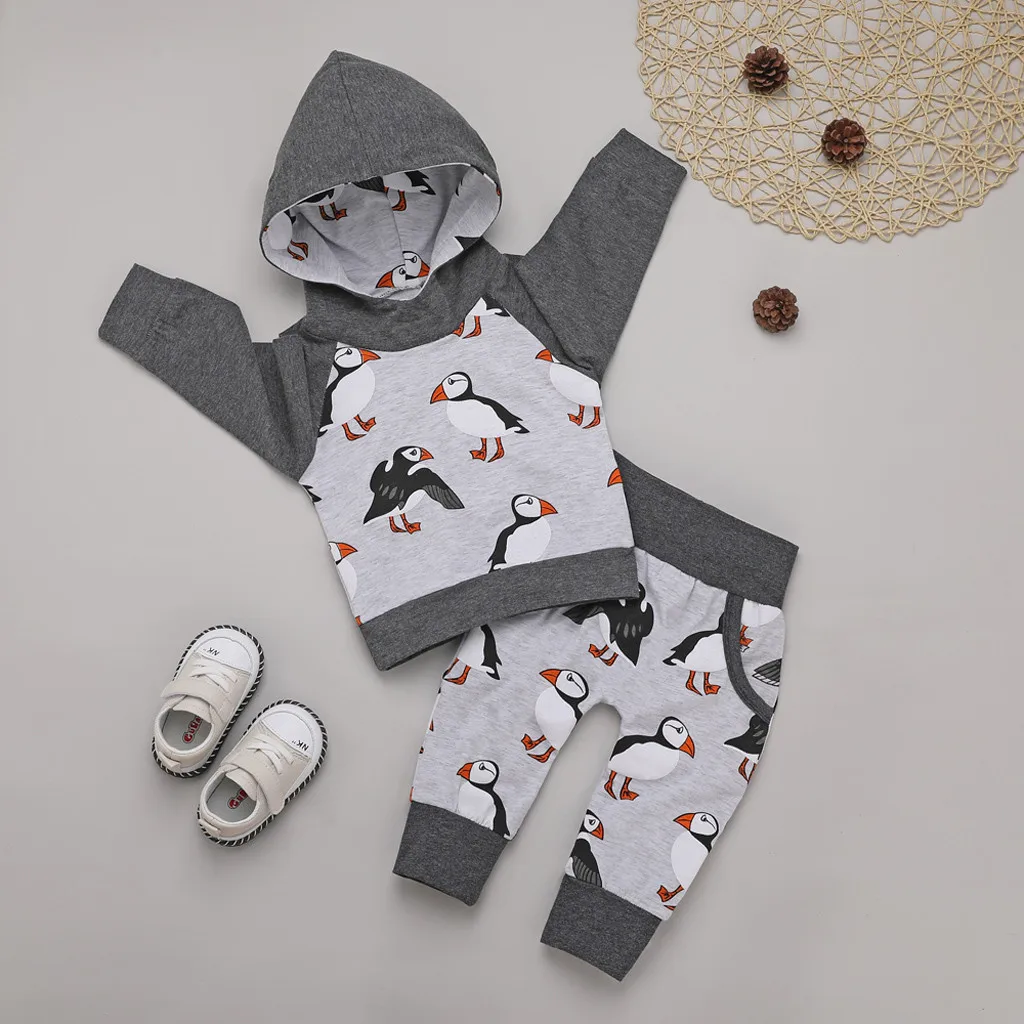 Newborn Infant Baby Boys Hoodie T Shirt Tops+ Cartoon Bird Pants Outfits Set
