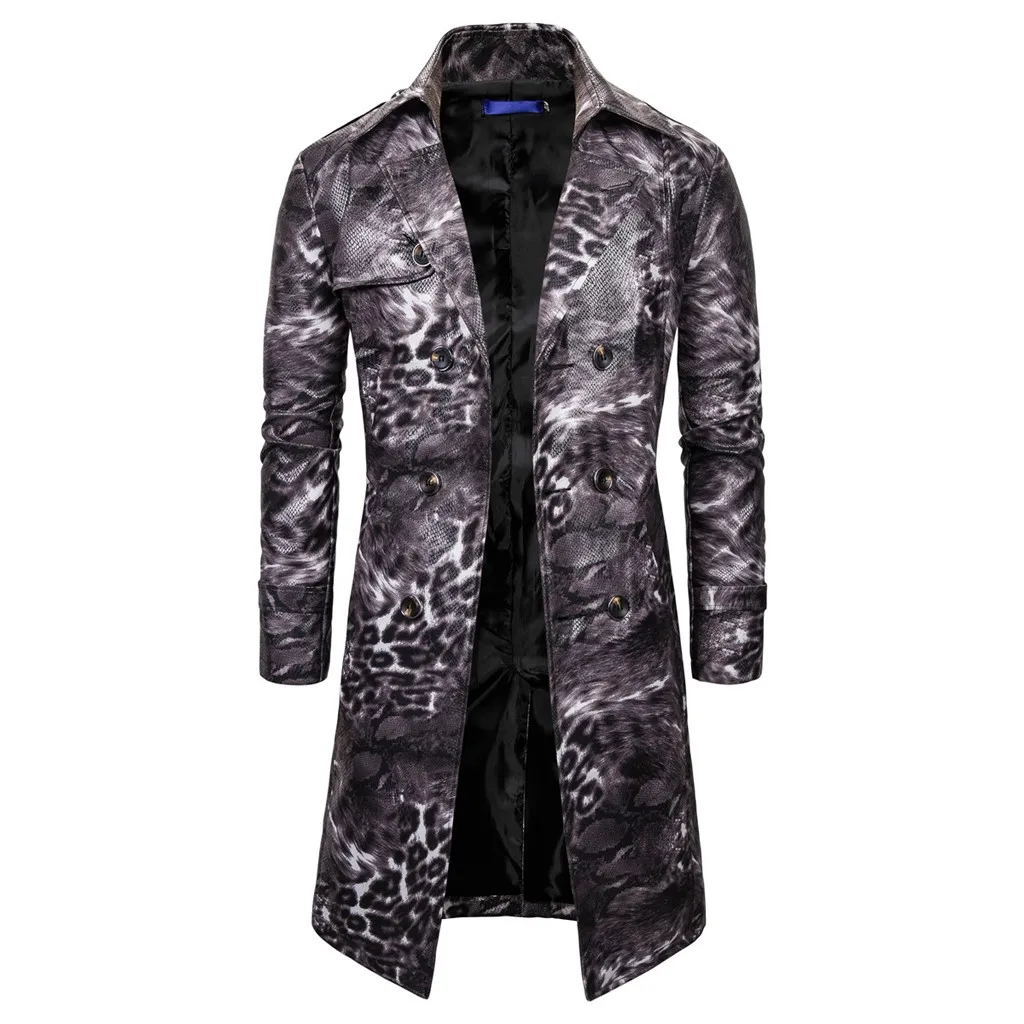 Мужская кожаная винтажная ветровка в стиле панк, готика, ретро, леопардовое пальто, Длинная ветровка