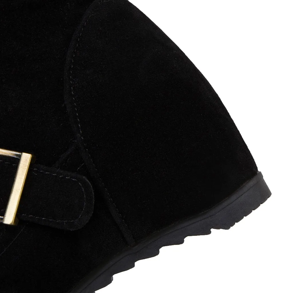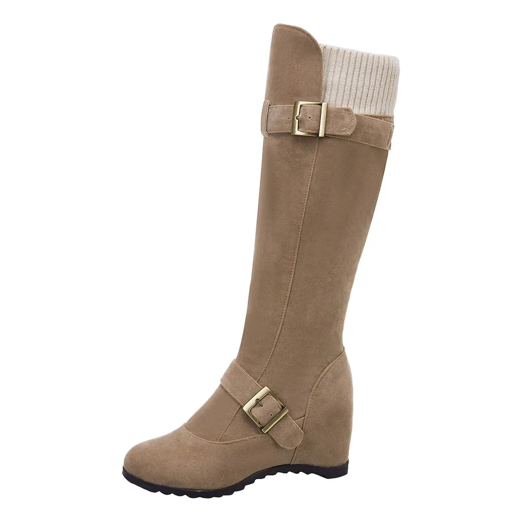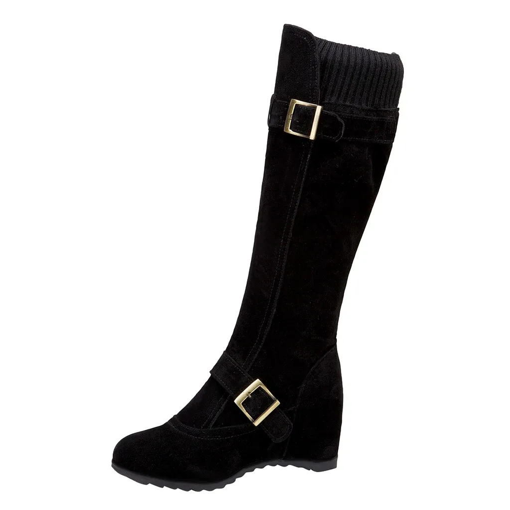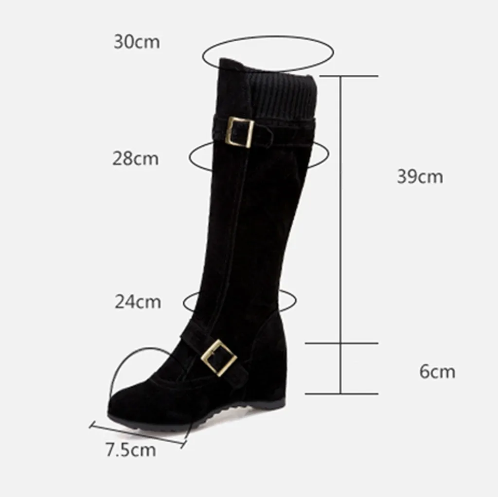 Women's Side Zip Buckle Knee High Boots Wedges Shoes Casual Middle Tube Booties