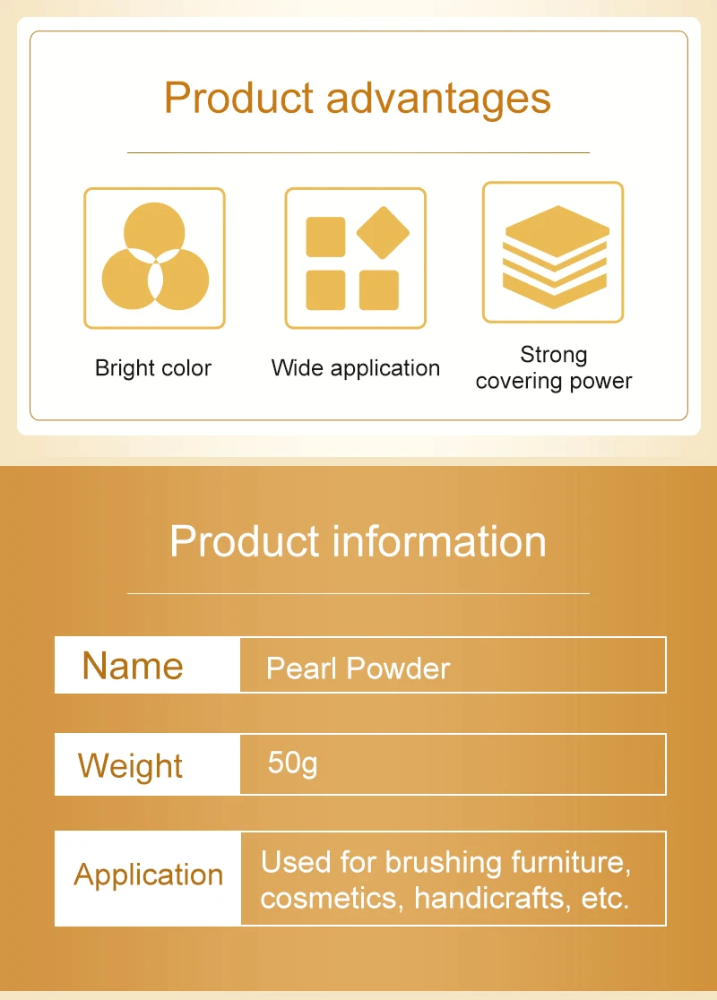 Применение:Краска и покрытие, чернила, пластик, кожа, печать, бумага, строительные материалы, украшения, металл, деревянная мебель, керамика, роспись стен, ручная роспись DIY, граффити, перламутровая краска, велосипедная краска, железная краска, ремонтная жемчужная кожа, игрушечная краска, Модифицированная Автомобильная живопись, ремесла, косметика, Тени для век, блеск для губ, лак для ногтей.