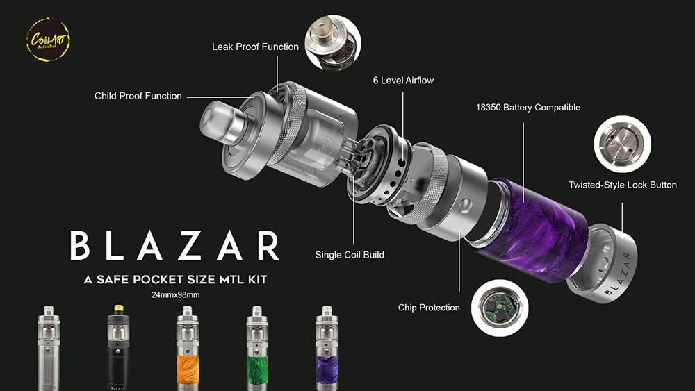 Новый оригинальный CoilART Blazar комплект MTL смоляный механический мод с 4 мл баком для электронных сигарет с питанием от батареи 18350