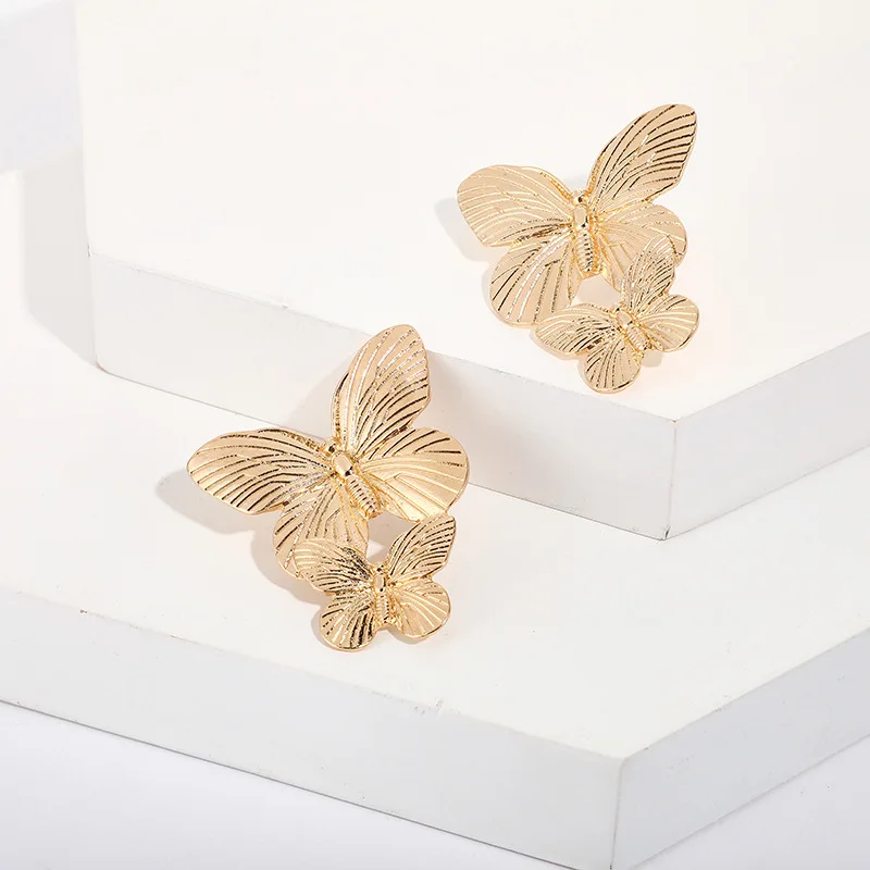 Женские серьги-подвески DIEZI в стиле панк с двойной бабочкой, эффектные золотистые металлические серьги, 2019
