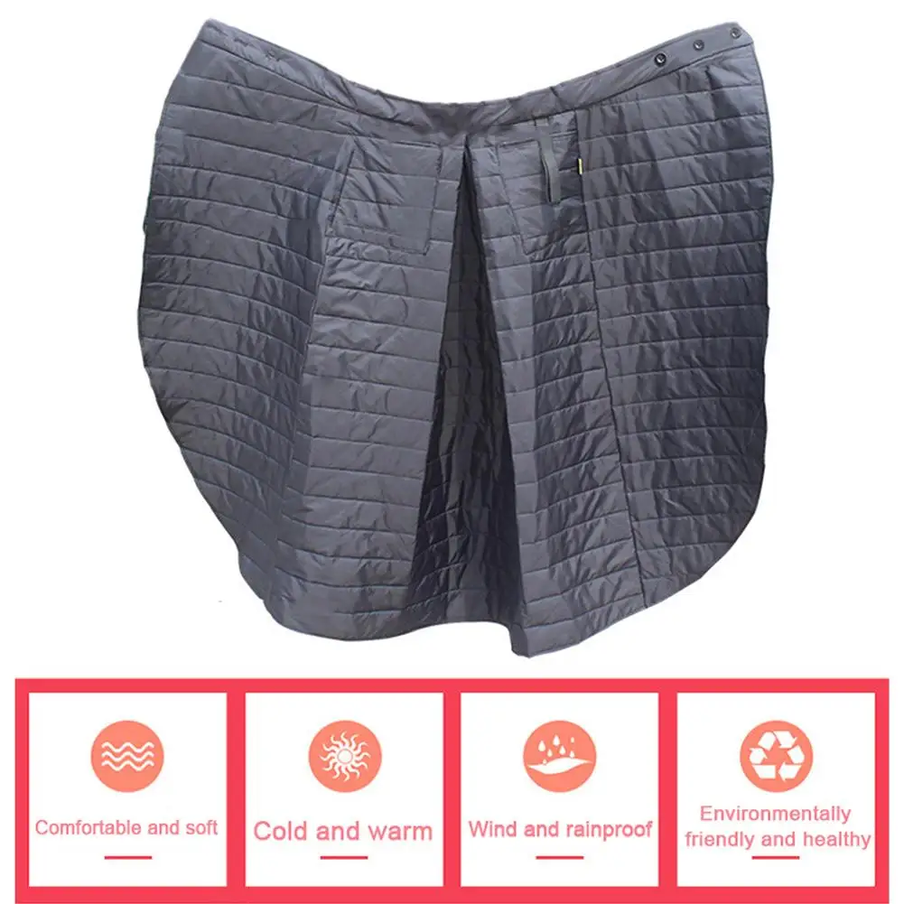 4,Windproof waterproof and Keep warm: Three-layer effect fabric, outer layer waterproof, windproof; middle layer filled with high quality warm cotton, high warmth, soft texture, environmentally friendly glue-free. Inner layer fabric has good air permeability, fast drying, no static adsorption, comfortable to wear .5,Large enclosure design: all- round cover the legs, the longest point is 93cm / 36.61in,