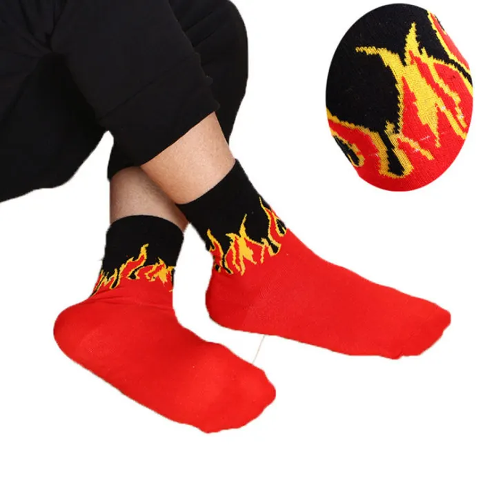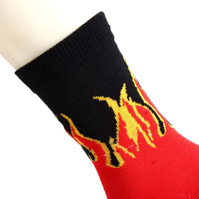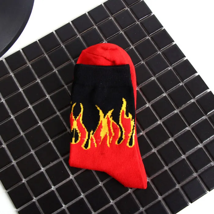 Мужские хлопковые носки, Повседневные Дышащие носки для скейтборда, мужские носки с принтом пламени, носки средней длины, GDD99