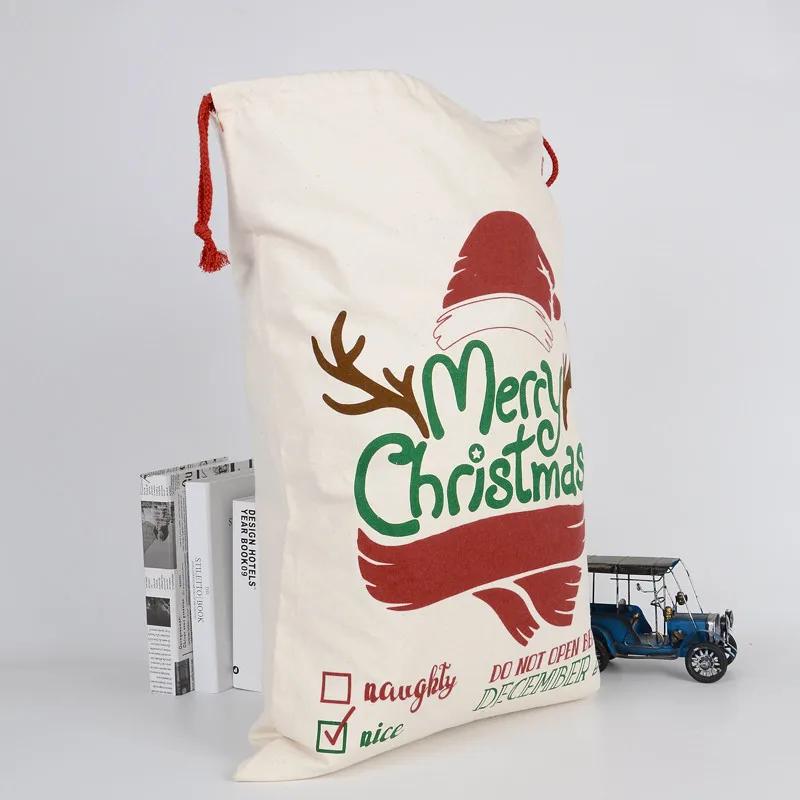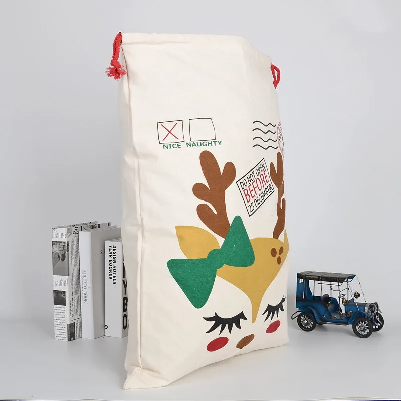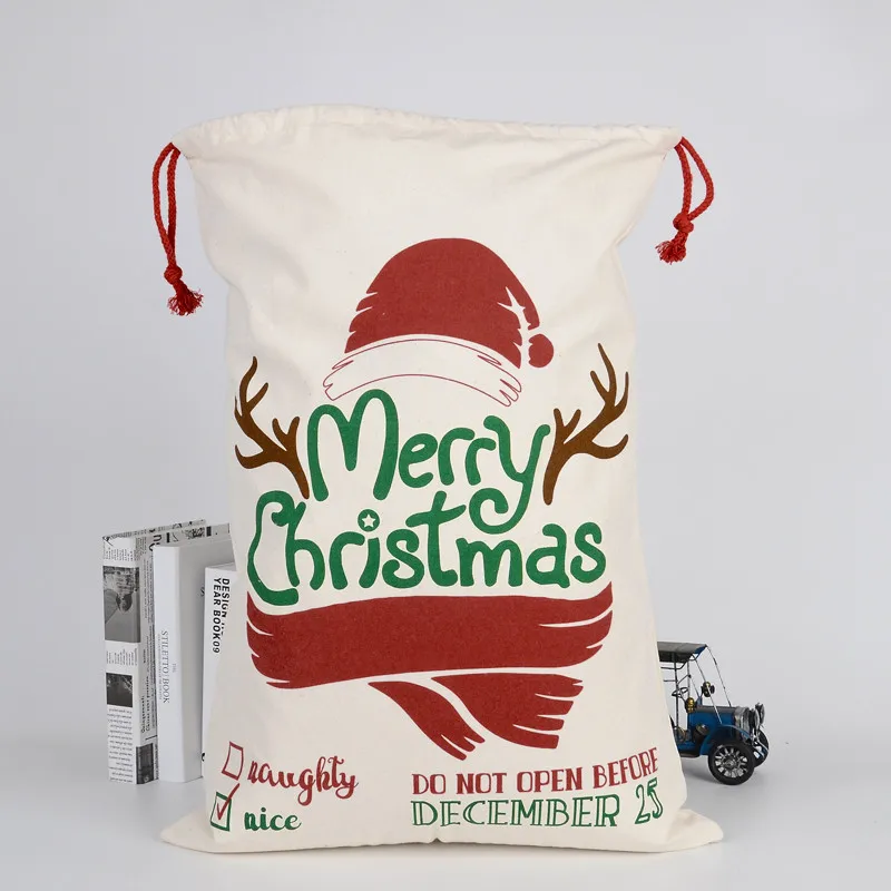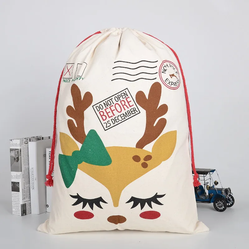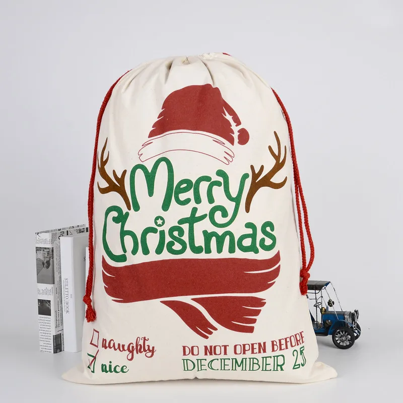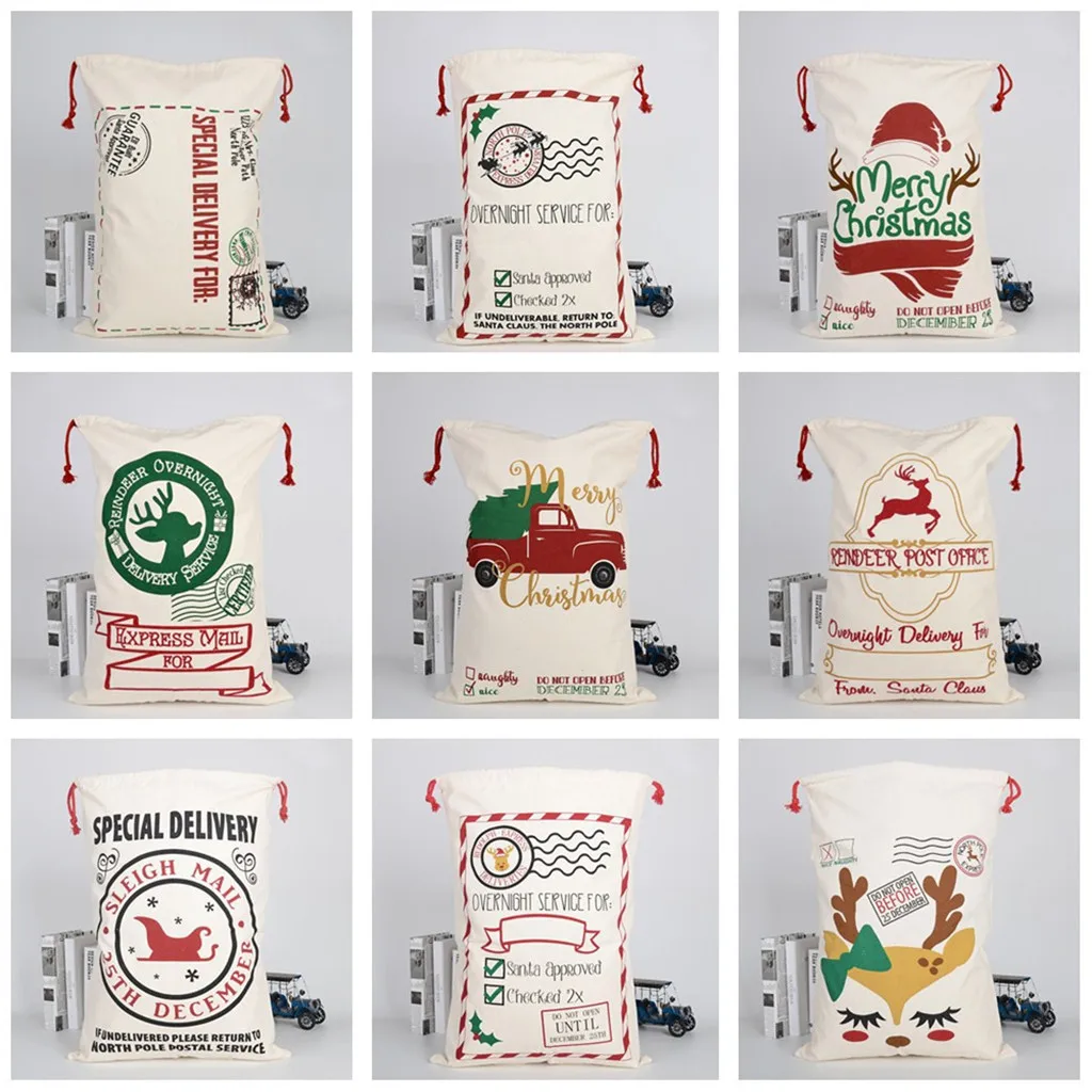 Большой Холщовый Веселый Рождественский мешок Санты, Рождественский чулок, Подарочная сумка для хранения оленей