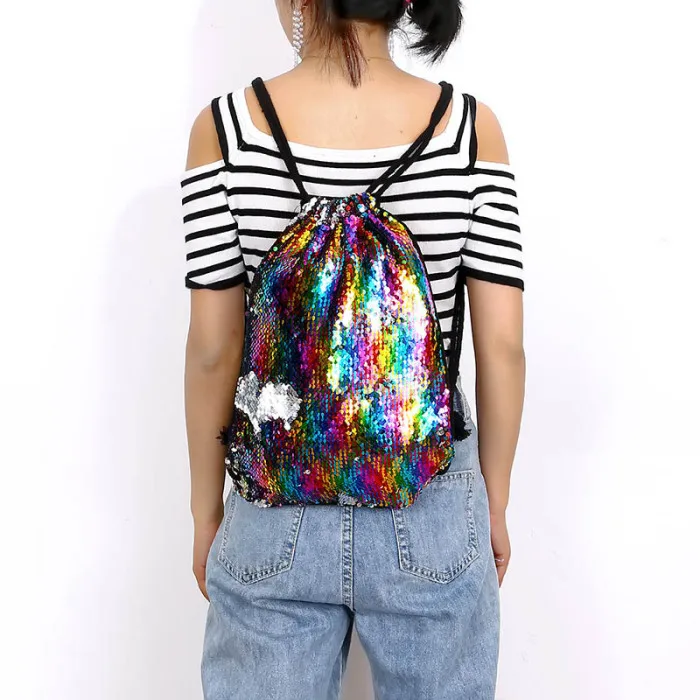 Новые сумки на шнурке с блестками, рюкзак с блестками, блестящие сумки на плечо для девочек и женщин, FIF66