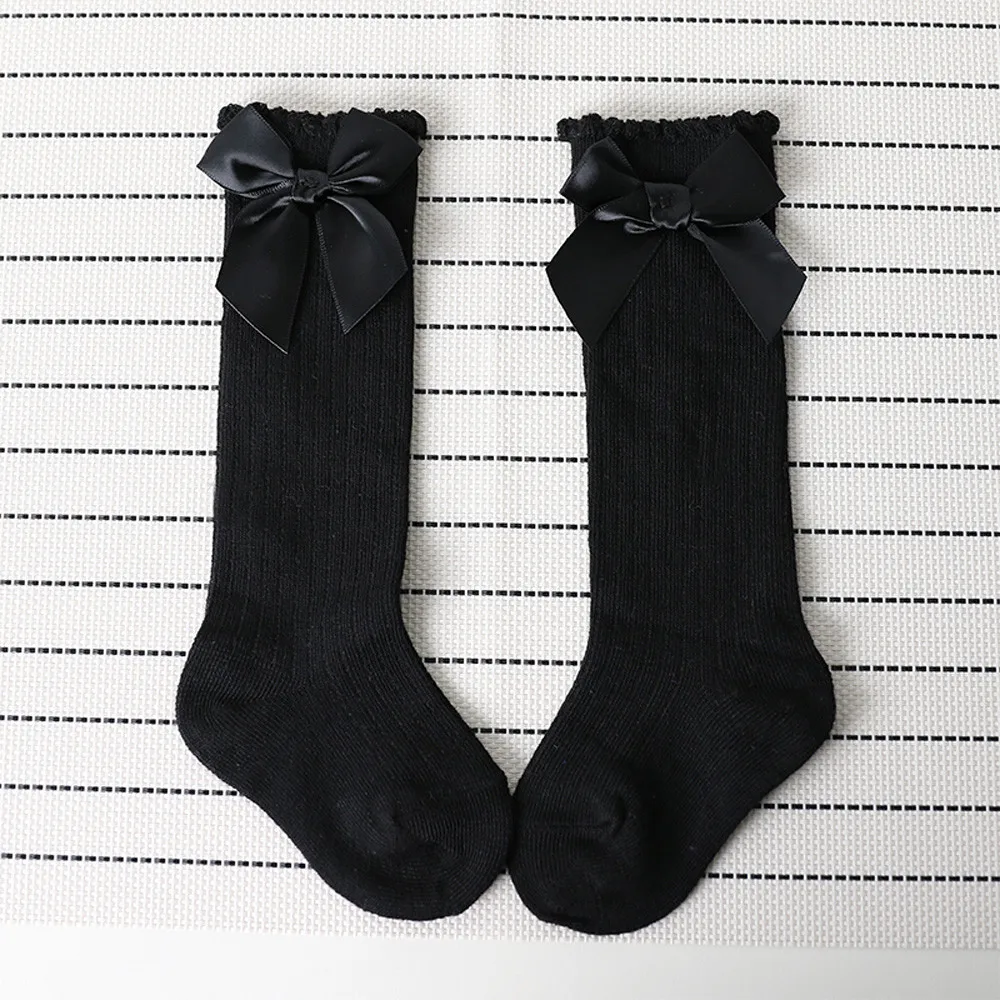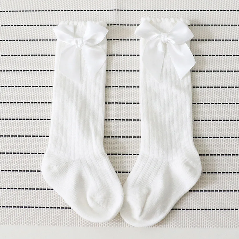Кружевные носки с бантиком новые детские однотонные мягкие теплые хлопковые детские носки до колена для маленьких девочек recien nacido skarpetki