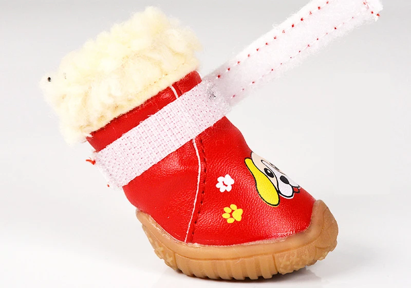 Обувь для собак с принтом лап; Сезон осень-зима; Оптовая продажа; Теплые зимние сапоги из хлопка красного, розового, коричневого цвета; Водонепроницаемые противоскользящие износостойкие ботинки для домашних животных