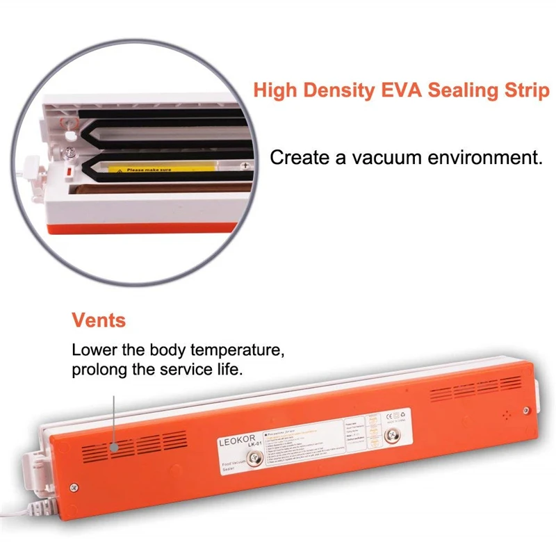 Характеристики: Материал: АБС-пластик высокого качества Размер: 36x5,4x5 см Напряжение: 110 В штепсельная вилка США; 220 В штепсельная вилка европейского стандарта Мощность: 100 Вт Вес: 485 г Длина теплового уплотнителя: 29,5 см Управление: автоматическое и ручное Посылка включает в себя: 1 х вакуумный упаковщик 1 x Руководство пользователя 15 х вакуумных мешков 20*25 см