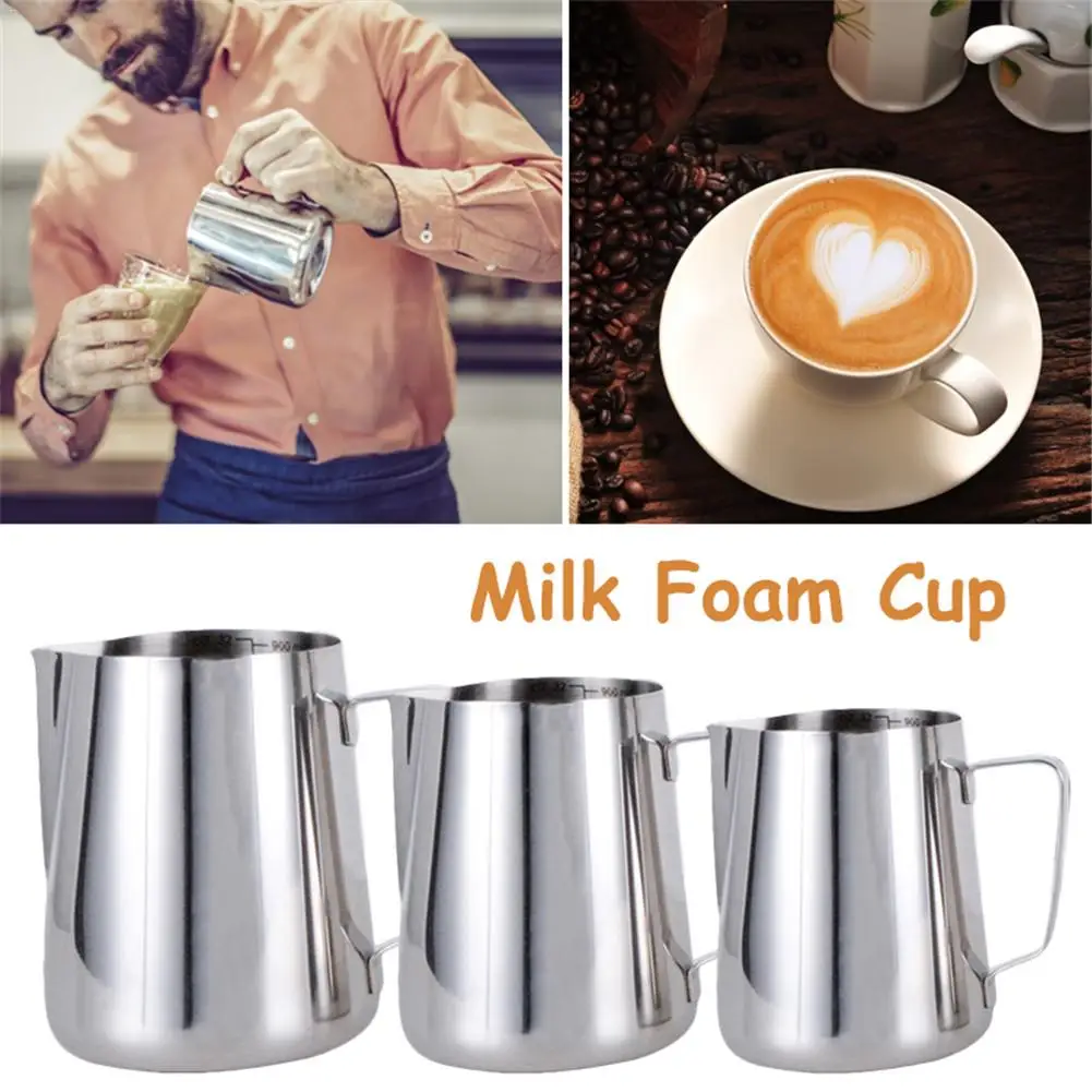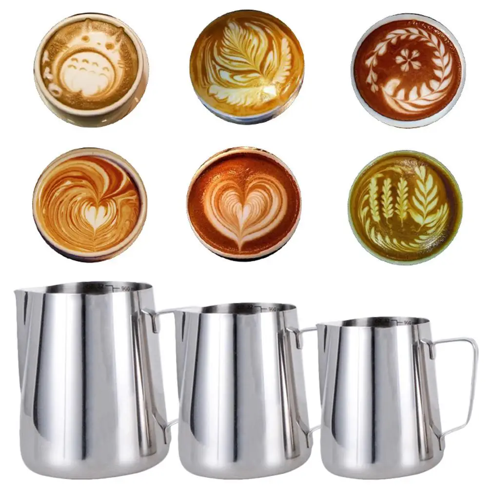 1. Материал высокого качества: чашка изготовлена из 100% абсолютно новой, высококачественной, экологически чистой и пищевой нержавеющей стали. 350 мл, 600 мл, 900 мл три размера на выбор.1 * чашка для молочной пены