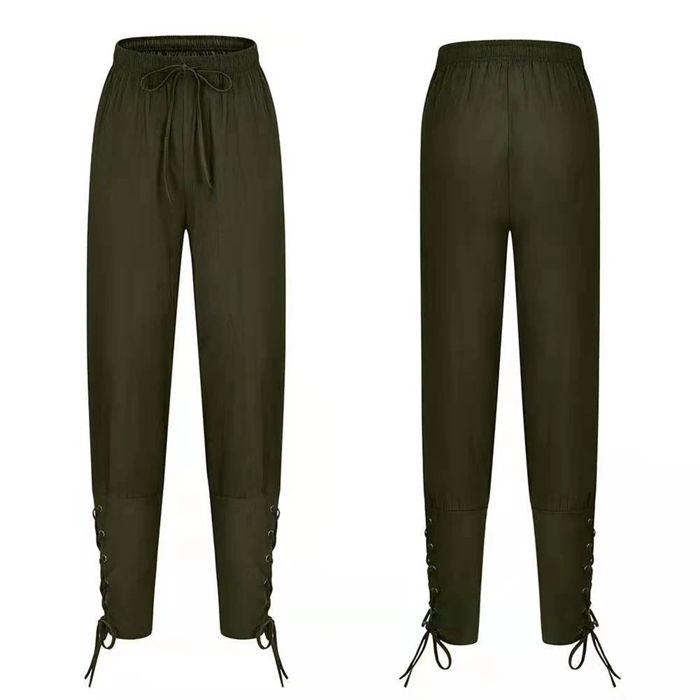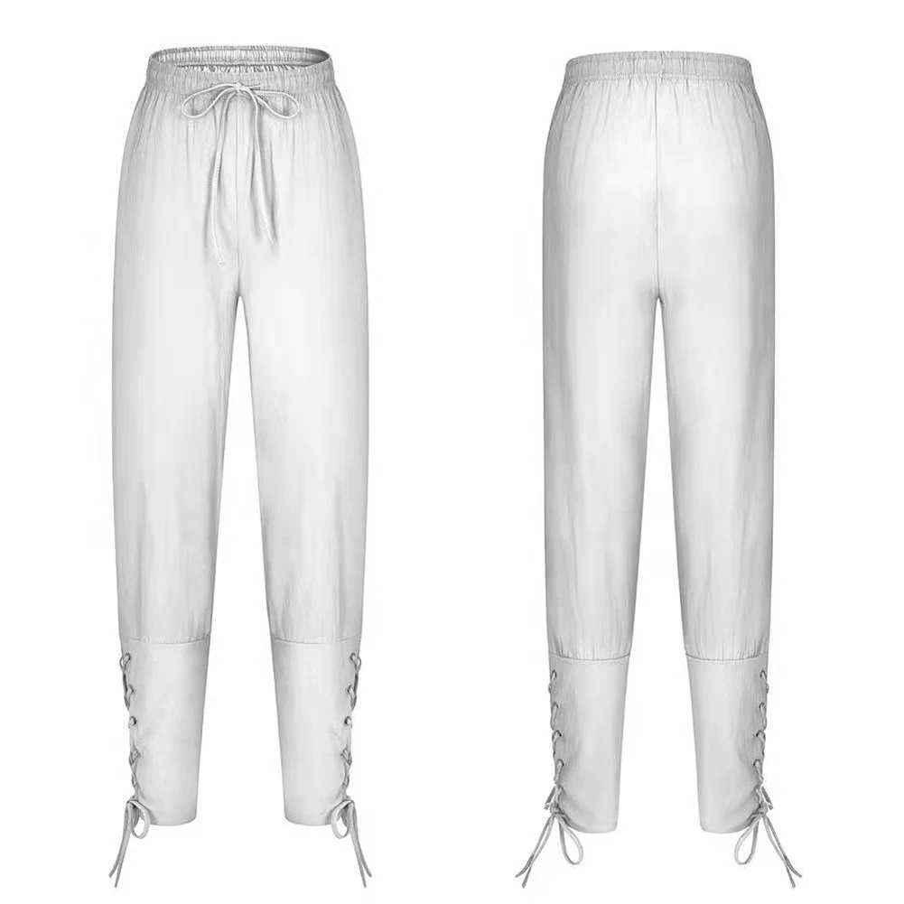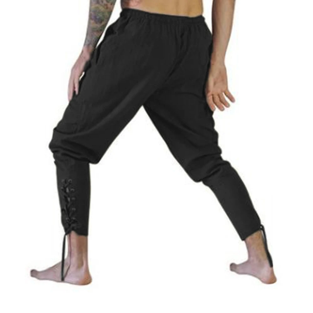 Мужские повседневные однотонные штаны с завязками на лодыжке, пиратские Костюмные брюки
