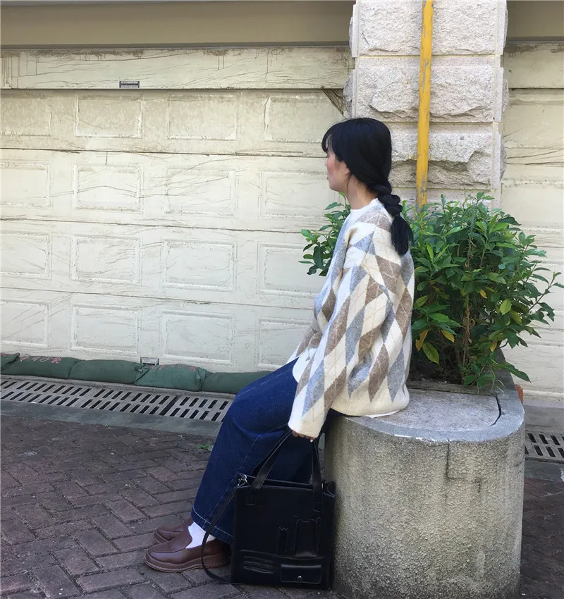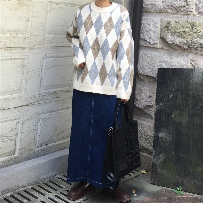 Теплый пуловер в форме ромбов.