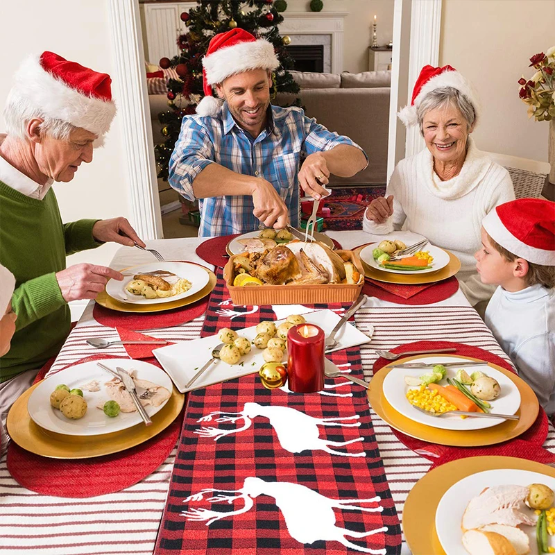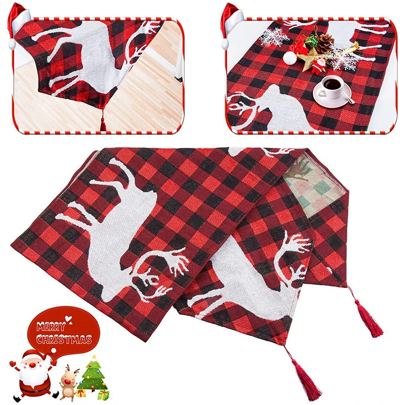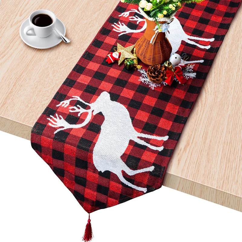 ❤Дизайн:Клетчатые яркие цвета и уникальный дизайн с рождественским рисунком, бегуны для рождественских столов используют превосходную технологию печати, не выцветают. Клетчатое украшение, мягкое и удобное.