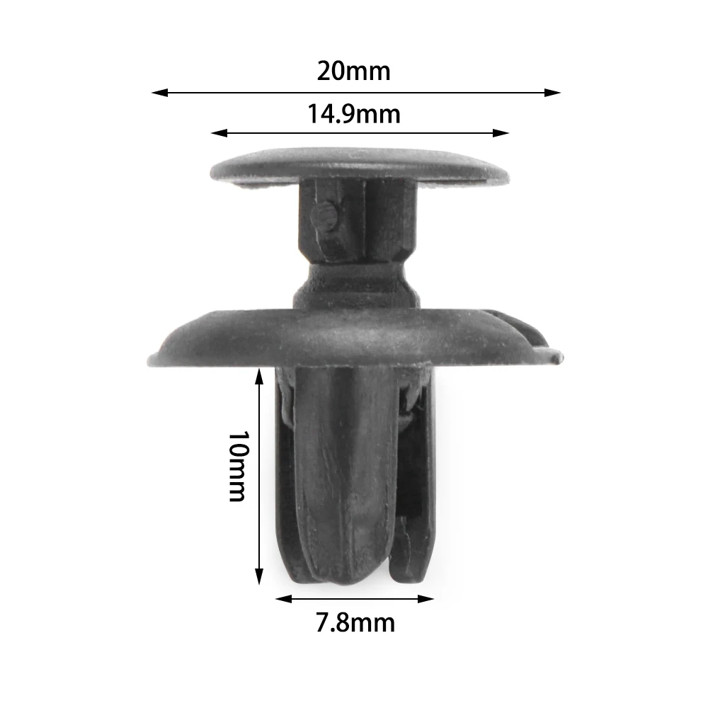 Состояние на 100% абсолютно новый Цвет: черный нейлон Количество: 20 шт. Размер: диаметр верхней головки: 20 мм Длина стержня: 10 мм Вставляется в отверстия 7 мм Идеально подходит для замены изношенных, поврежденных или сломанных зажимов. Примечание: Пожалуйста, проверьте свои старые зажимы, чтобы убедиться, что они нужны, как на картинке Демонстрация выше. Посылка входит: 20 x зажим для защиты от брызг
