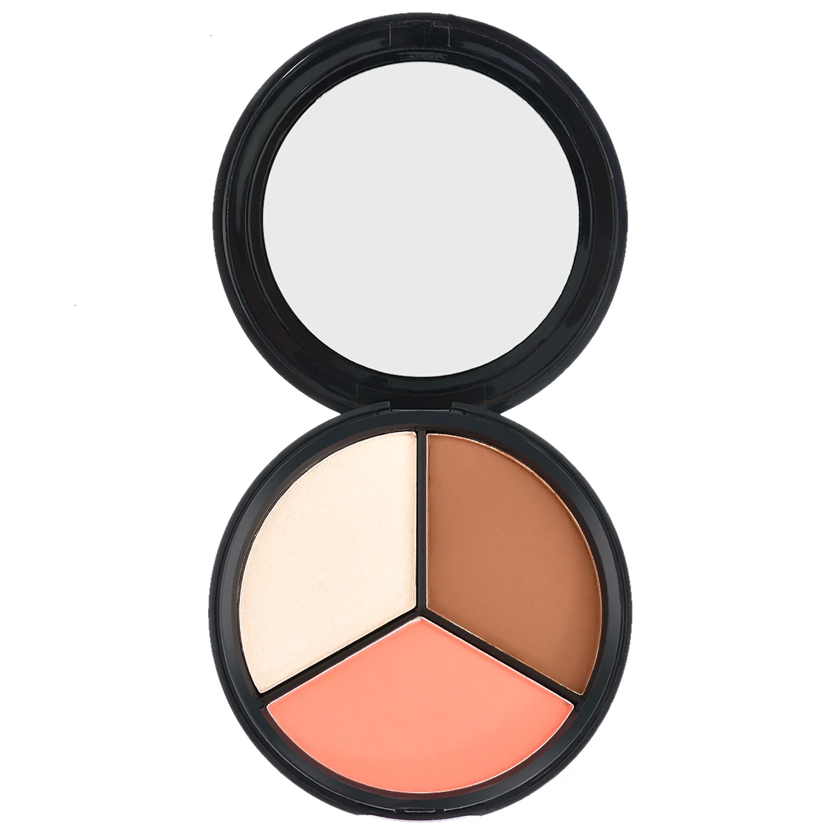 Выделите, цвет и контур Благодаря универсальному, легкому в использовании динамическому духу, который содержит бархатистый и гладкий светящийся порошок для pro-мелирования и матовый бронзирующий порошок для идеальной контурности, бронзовый щек. 3 цвета в палитре, один мерцающий цвет для подсветки, один матовый бронзирующий порошок для бронзовых щек.