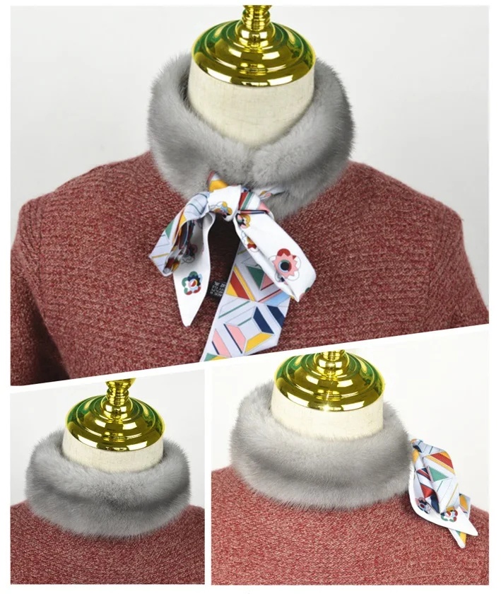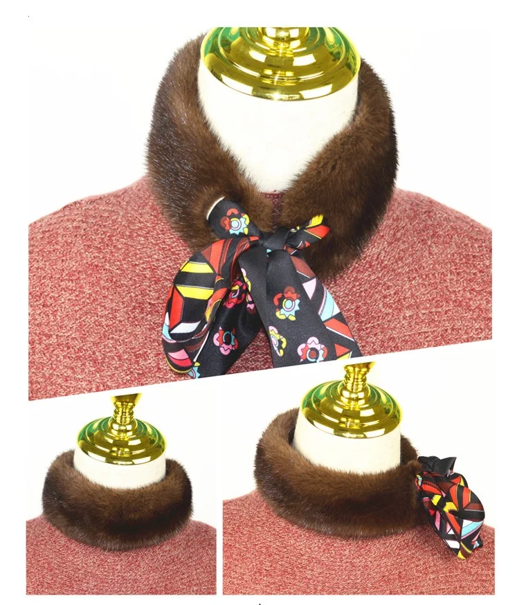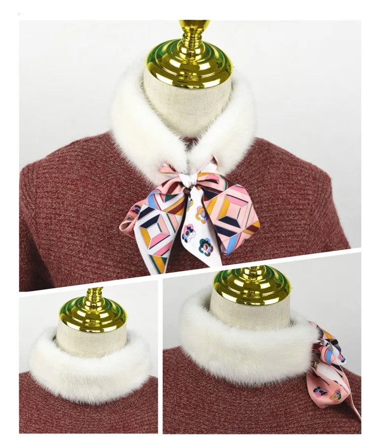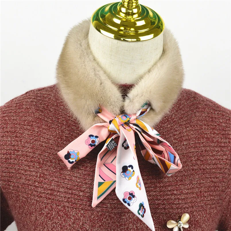 Новый дизайн, шарф из натурального меха, универсальный корейский шарф с воротником из натурального меха норки, женский теплый плюшевый пушистый шарф с лентой на шее для женщин