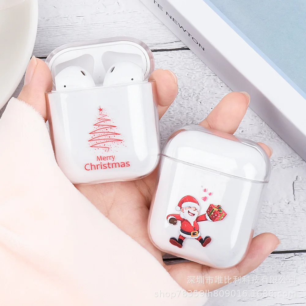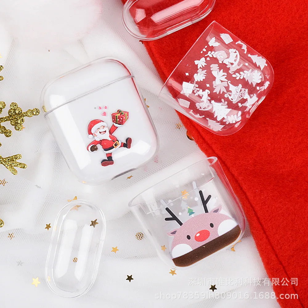 Жесткий защитный чехол для AirPods 1, 2, Рождественский окрашенный Прозрачный чехол для apple air pods, беспроводные Чехлы для Bluetooth наушников