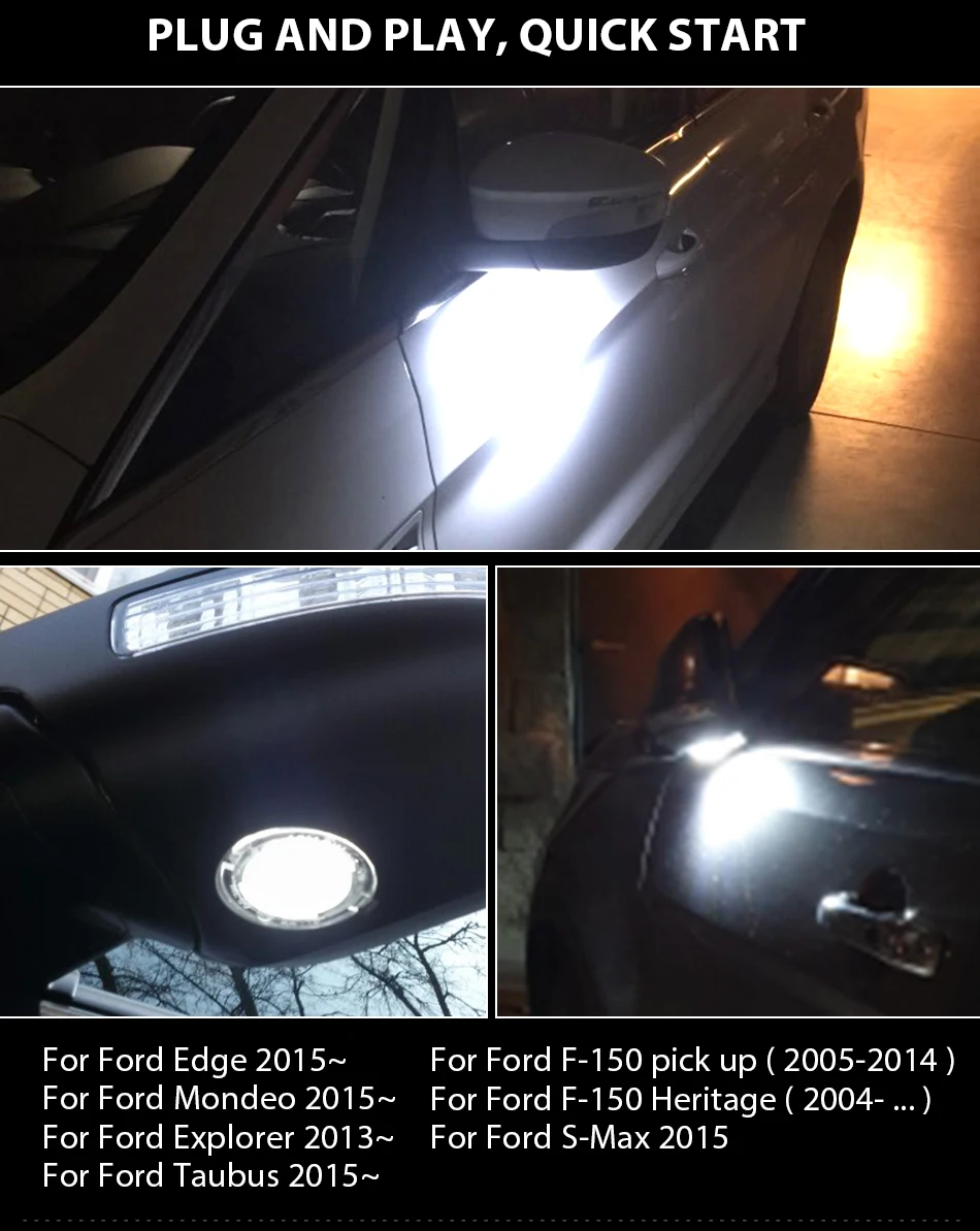 Белый светодиодный зеркальный светодиодный светильник/светодиодный светильник-лужа для Ford * Подключи и работай, быстрое мгновенное время запуска * Простая установка, прямая замена с OEM качеством и монтажом. * Может модернизировать как заводской галогенный, так и светодиодный Тип * Длительный срок службы, ударопрочность и устойчивость к вибрациям * Высокая яркость. Специальная Передняя прозрачная линза для широкого распространения светодиодный светильник. * Напряжение: 12 В * Отделка поверхности: пластиковая крышка и светодиоды SMD * Светодиодный номер: 18 шт. (на светильник) Фитинг Для Ford Edge 2015 ~ 2019 Для Ford Mondeo 2015 ~ 2019 Для Ford Explorer 2013 ~ 2019 Для Ford Taubus 2015 ~ 2019 Для Ford F-150 пикап (2005-2014) Для Ford F-150 Heritage ( 2004- ... ) Для Ford S-Max 2015 Примечание: Для того, чтобы убедиться, что эти лампы подходят или работают, пожалуйста, дважды проверьте Справочное руководство