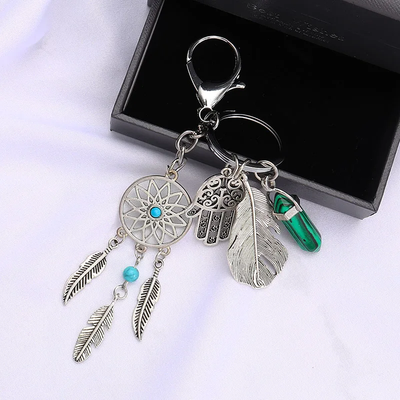 Брелок для ключей в виде Ловца снов, перо, ручная работа, цветной камень, Ловец снов, автомобильный кулон, украшение на стену, подарок, декор для комнаты
