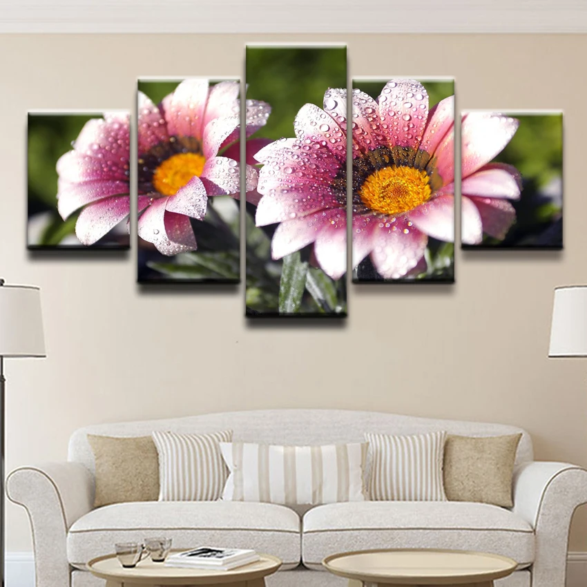 modname=ckeditorCanvas Wall Art Pictures Living Room Home Decorative 5 Pieces Dew Pink Flower Painting HD Printed Poster Modular Framework