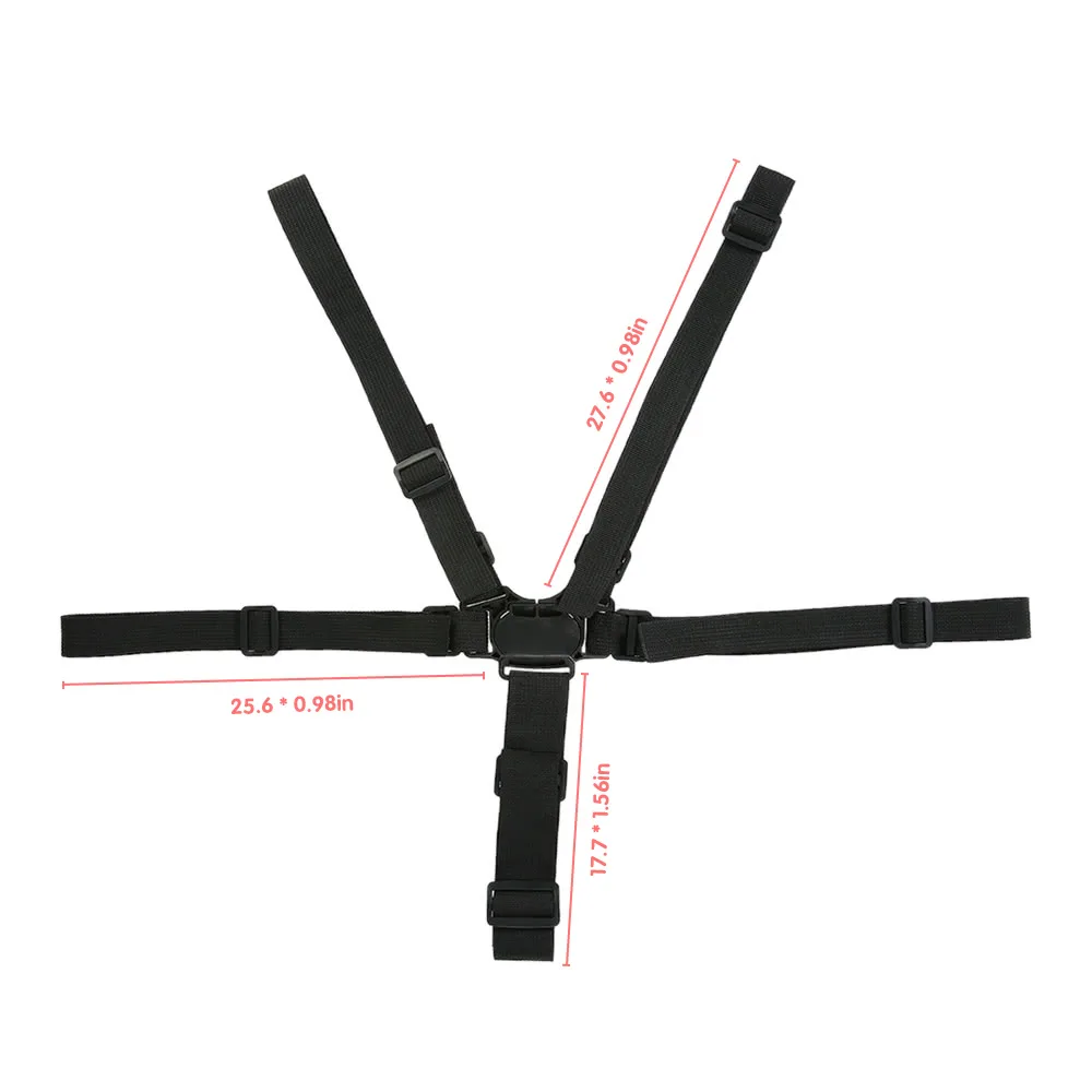 5 точечные ремни безопасности изготовлен из высококачественного нейлона и пластиковый материал, безопасный и удобный. Он также может быть использован как 3 точечные ремни безопасности. Наплечные ремни, поясные ремни и набедренные ремни регулируются для лучшего прилегания детской коляски или стула, позволяя Вашему ребенку безопасно и удобно сидеть. Поможет Вашему ребенку создать хорошую привычку к еде.