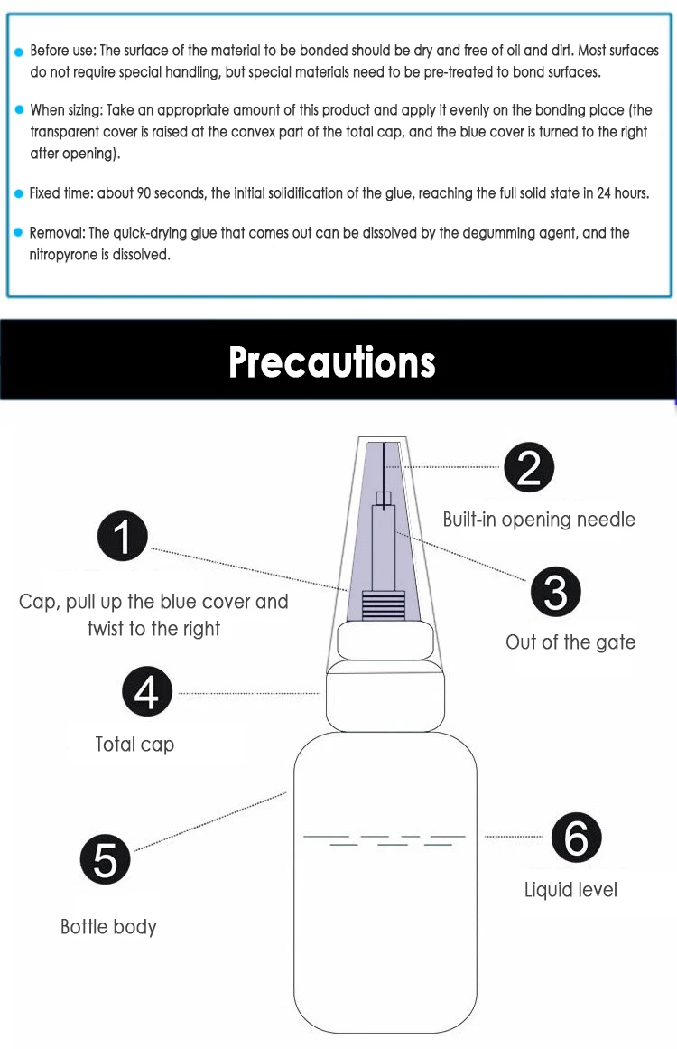 2, не выдавливайте боковую часть бутылки, чтобы избежать большого количества клея.