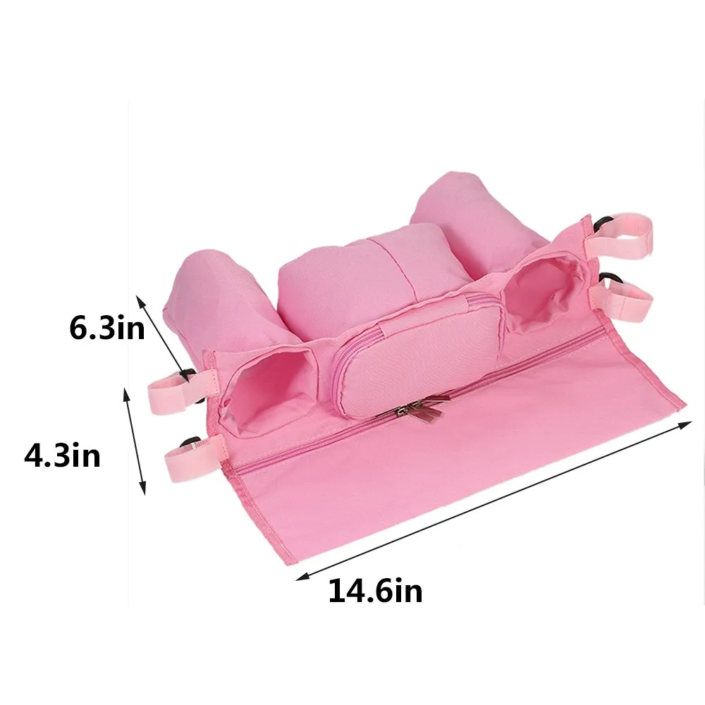 Этот органайзер для коляски изготовлен из высококачественной ткани Оксфорд, легко моется. С регулируемыми лямками, он подходит для большинства детских колясок. Легкий и вместительный, с двумя держателями для напитков и двумя карманами на молнии для подгузников, закусок и маленьких игрушек, удобен для активного отдыха.