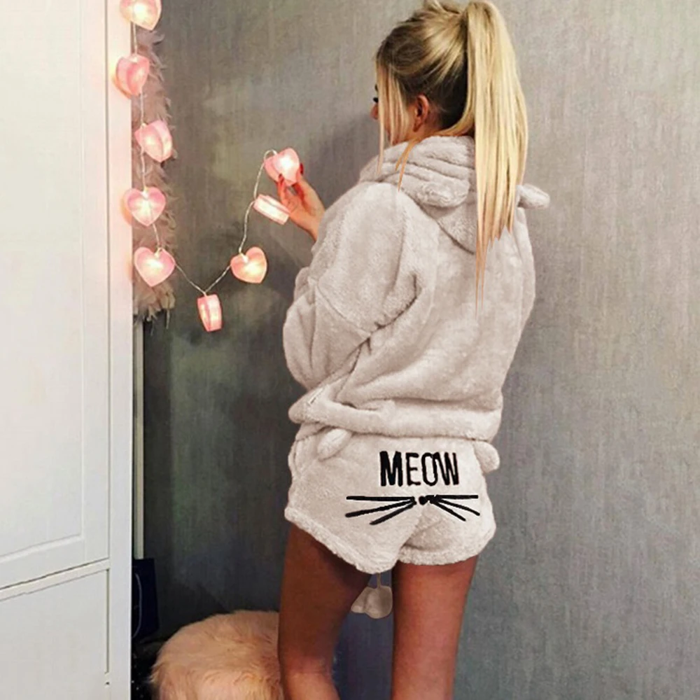 Женские пижамные комплекты, Осень-зима 2020, фланелевые теплые пижамы с мультяшным котом, пижамы с животными, женская пижама с кошкой, Женская домашняя одежда