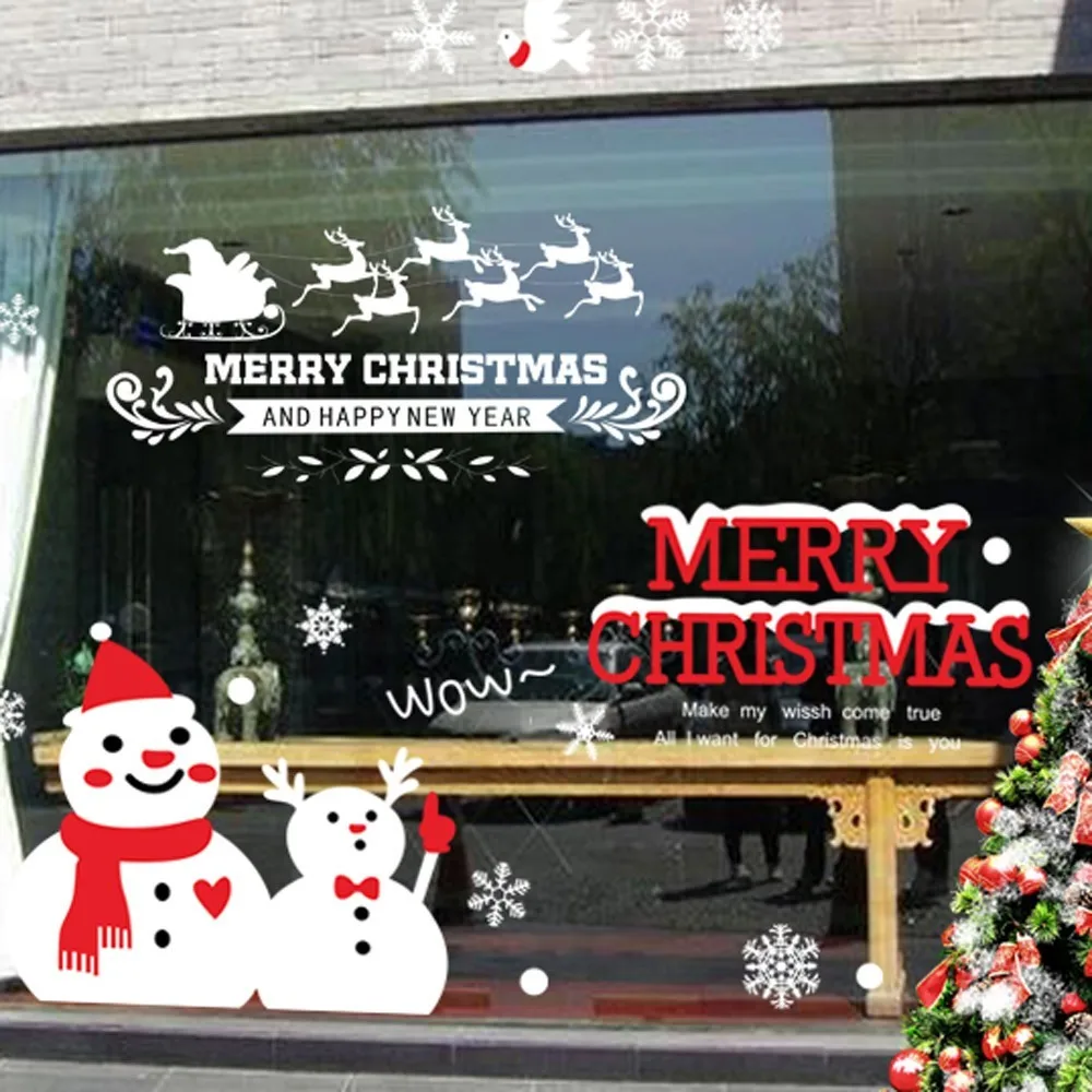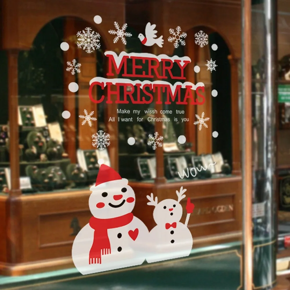 Рождественский снеговик съемный дом виниловые окна наклейки на стену Наклейка Декор