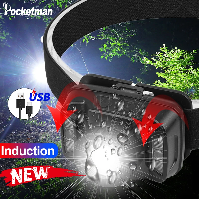 Мощный налобный фонарь движения тела Сенсор головной светильник USB Перезаряжаемые головной светильник Водонепроницаемый зум передняя фара светильник Кемпинг Z50