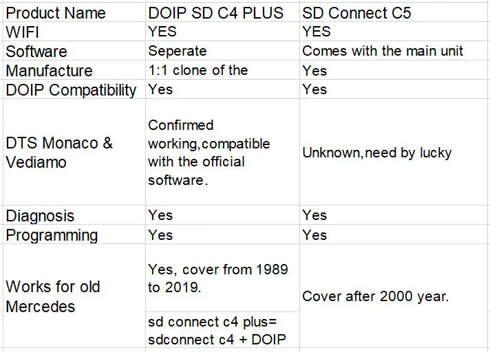 Сравнение MB SD C4 doip PLUS и SD C5 doip: