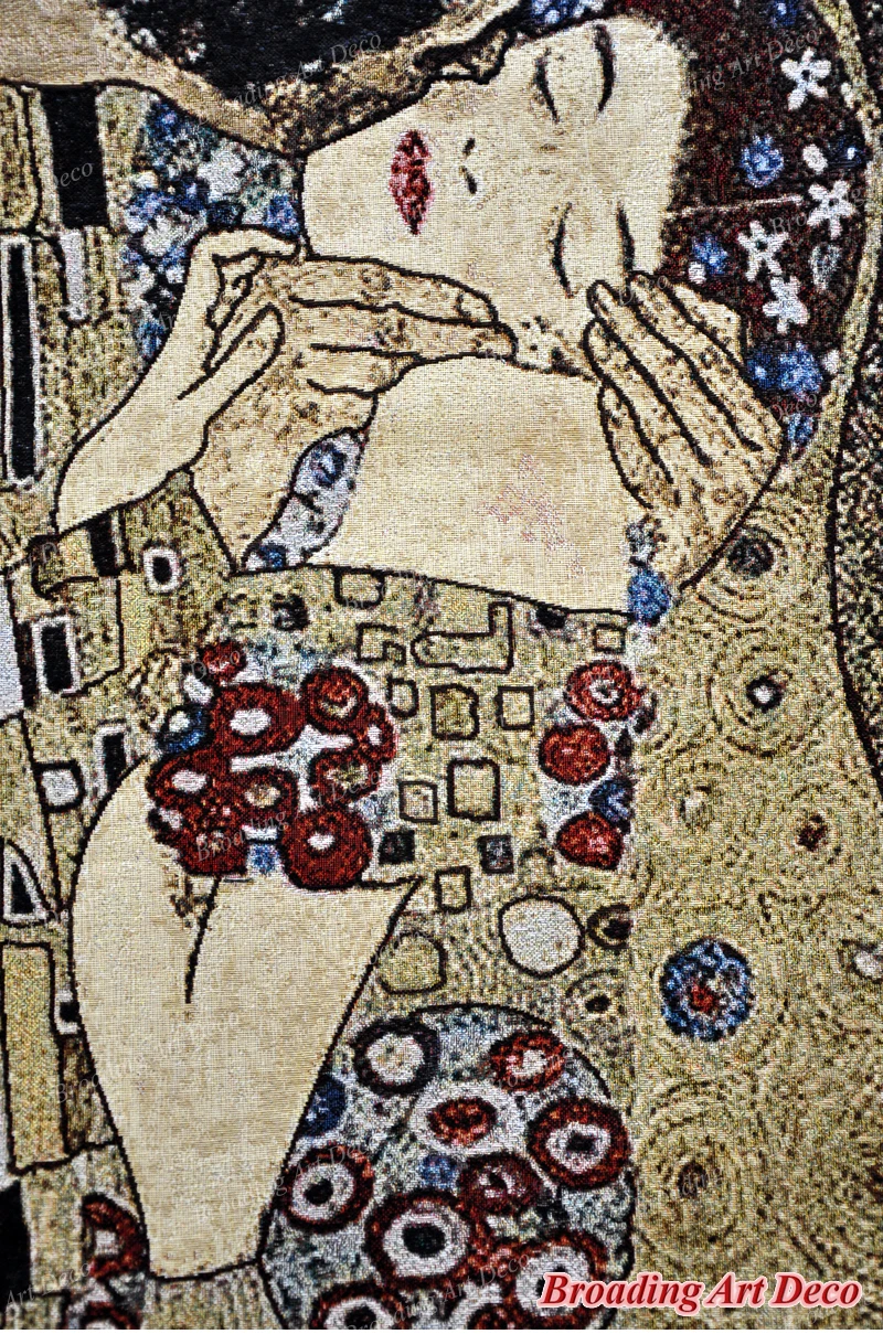 Название гобелена: поцелуй (квадрат) Высота: 138 см (54 дюйма) Ширина: 138 см (54 дюйма) Вес: 1,6 кг (3,5 фунтов) Материал: хлопок 100% Место происхождения: тканые в Китае Стиль: жаккардового переплетения Стирка: Только сухая чистка Задняя сторона: Полностью на подкладке, с двумя стержневыми карманами сверху и снизу