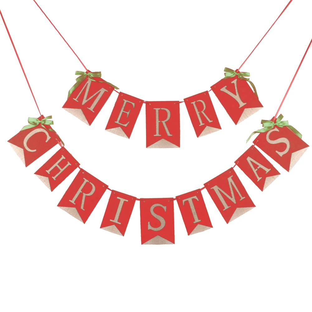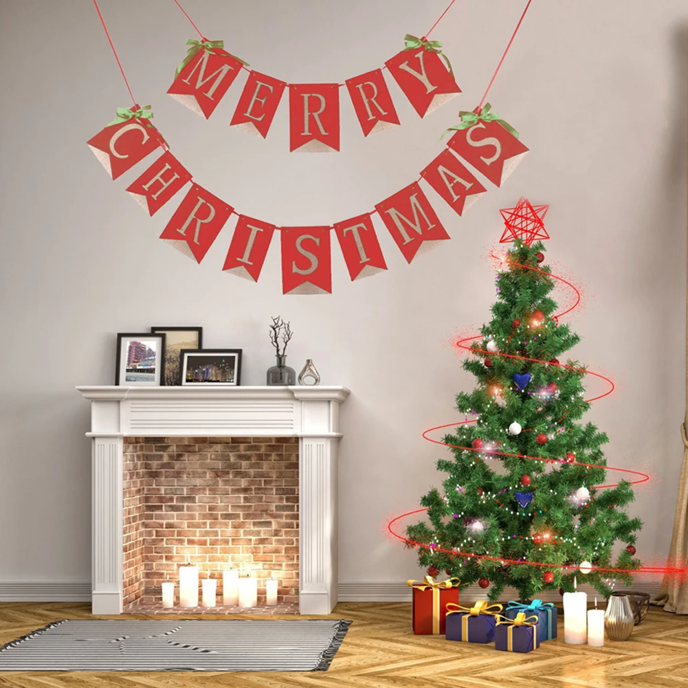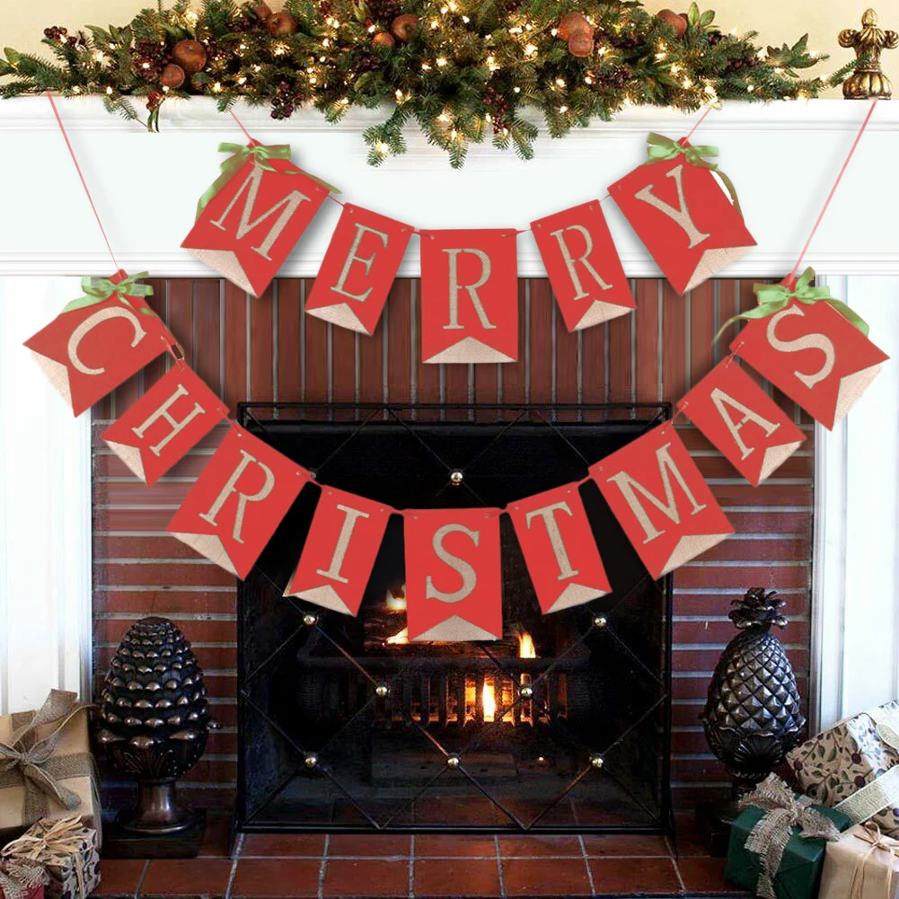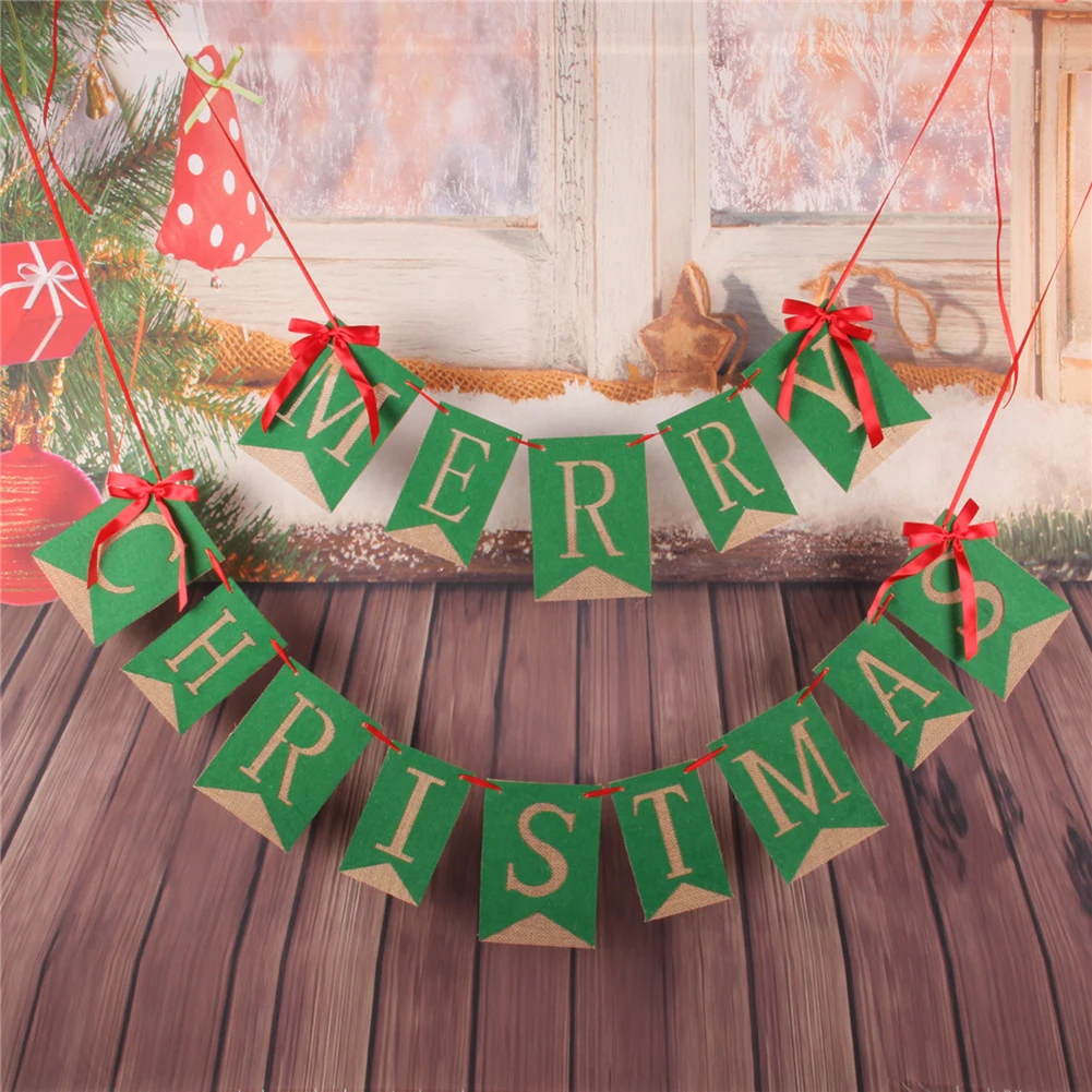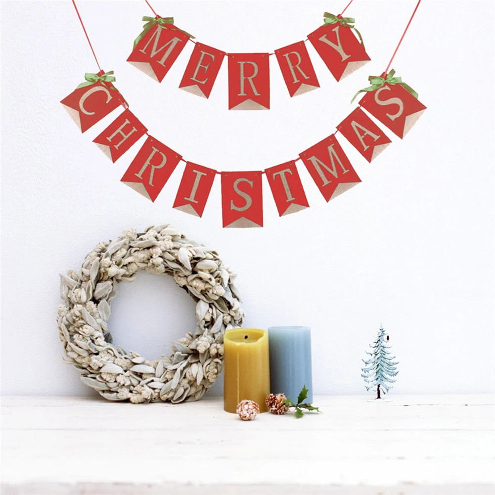 1. Hessian льняной Счастливого Рождества баннер с буквами.