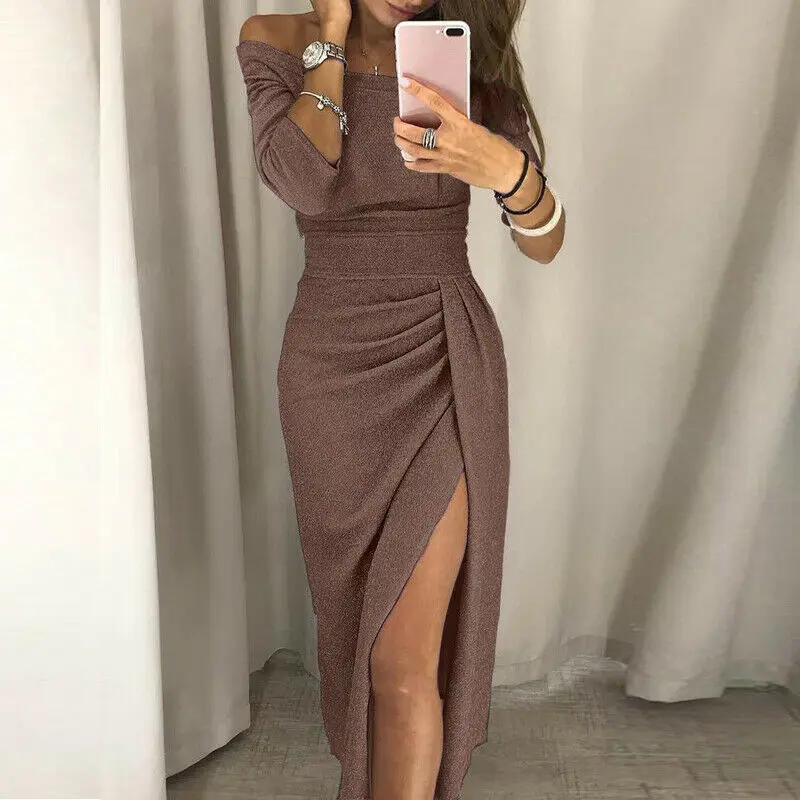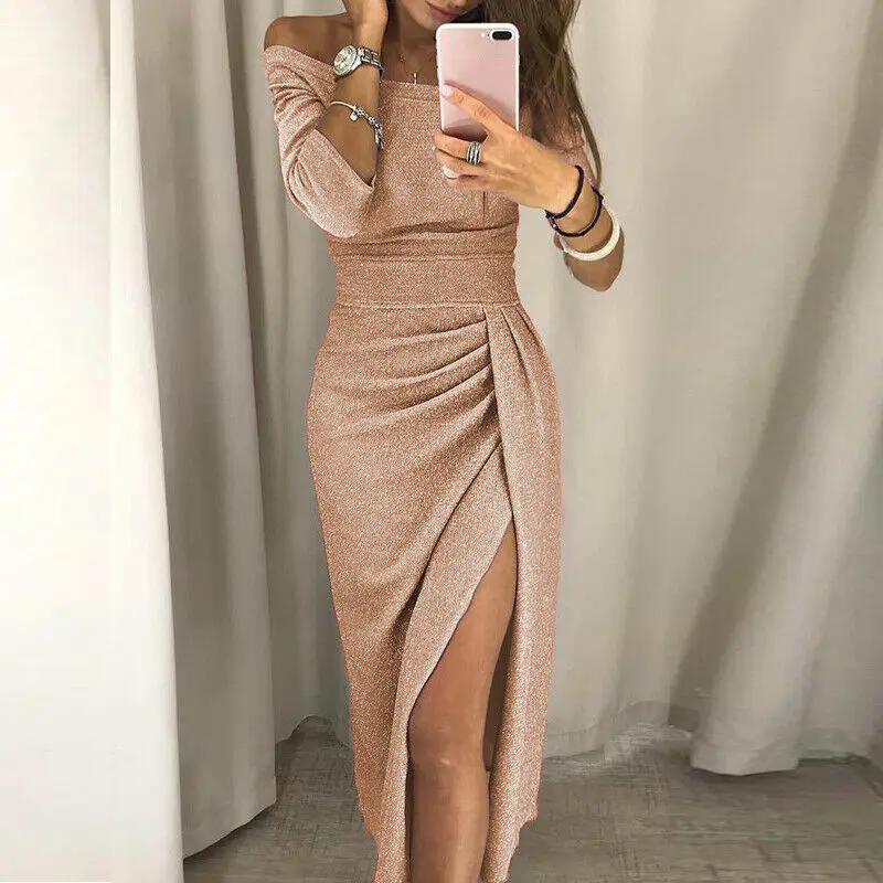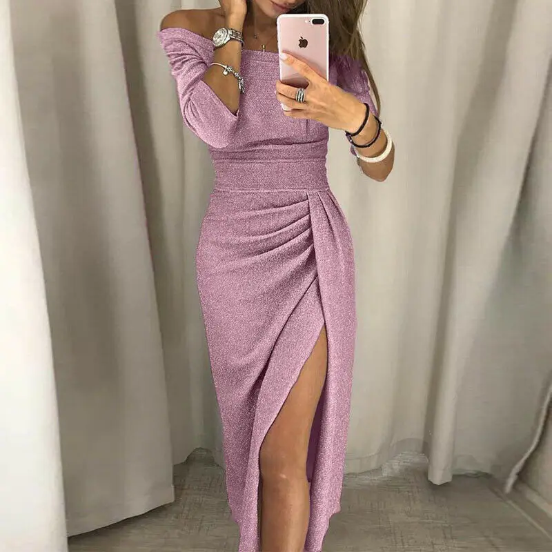 Материал:Полиэстер Цвет: розовый, серый, абрикосовый Стиль:Модный повседневный облегающий костюм с открытыми плечами