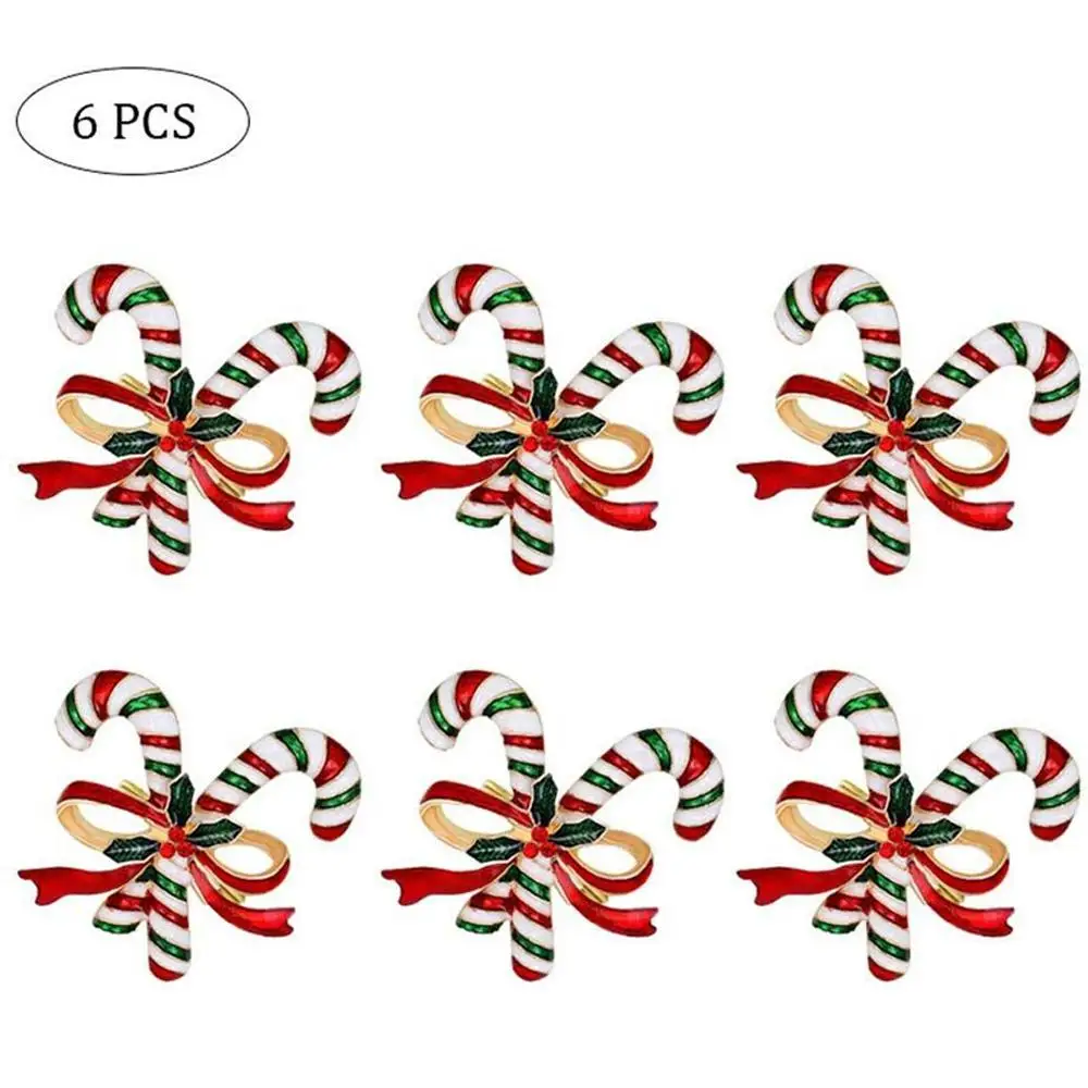 -Набор из 6 новых колец для салфеток Рождество, включая елку, чулки, конфеты и колокольчики четыре узора на выбор