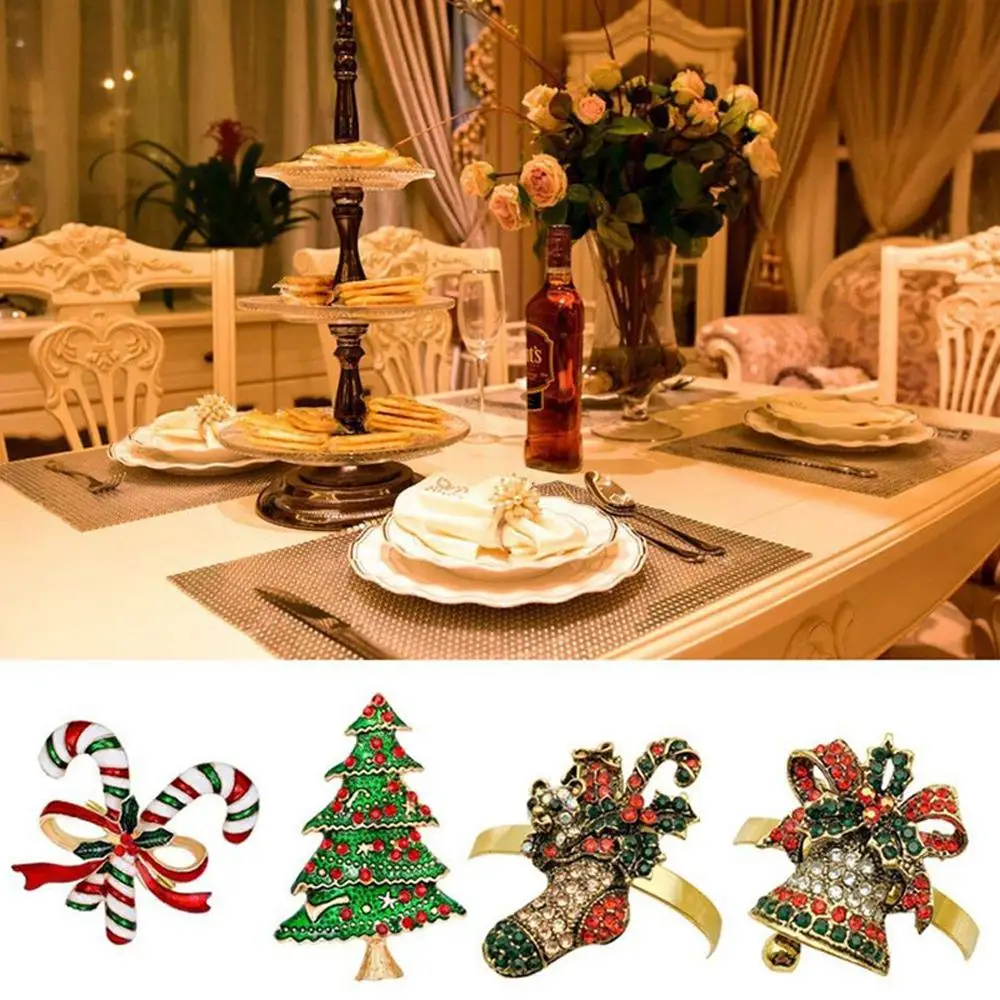 Высокое качество: наши держатели колец для салфеток изготовлены из цинкового сплава с рождественскими елочными чулками конфеты, колокольчики узором с блестящим бриллиантом. Добавьте немного шика в планшет и радуйте гостей этими сверкающими кольцами для салфеток