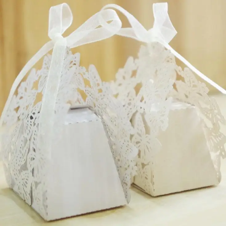Подарочные бумажные коробки с бабочками, креативная лазерная резка, Свадебная коробка конфет, шоколадная коробка, свадебные украшения, принадлежности для бабочки, лазерная резка, полый ящик для перевозки, подарки, коробки для конфет с лентой для детского душа, товары для свадебной вечеринки