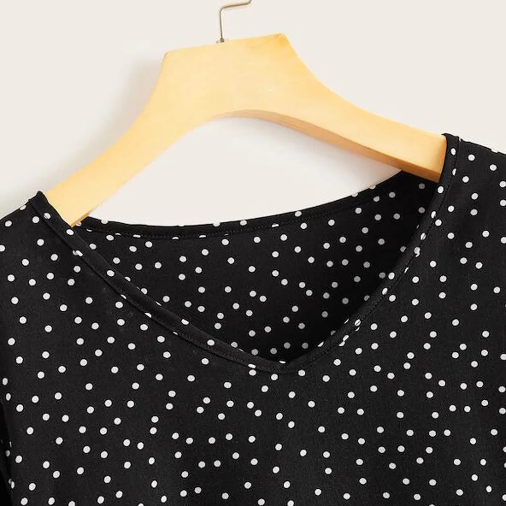 Женские повседневные топы с v-образным вырезом и оборками в горошек с воланом, топы с баской, футболка, блузка