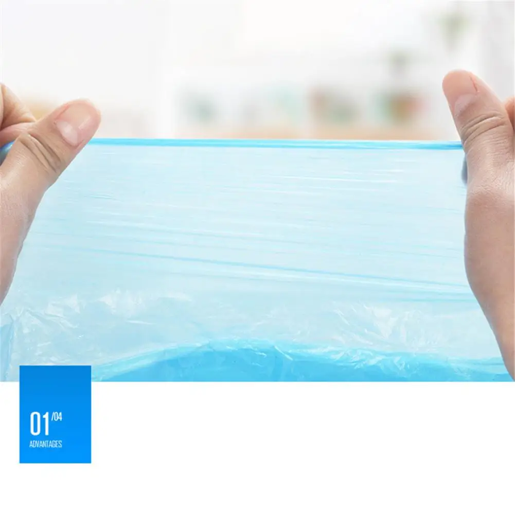 Материал мешка для мусора: полиэтилен PE (полиэтилен: используется для изготовления полиэтиленовых упаковок, пищевых пластиковых пакетов, молочных бутылок и т. д. не токсичен и не имеет запаха, безвреден для человеческого организма)