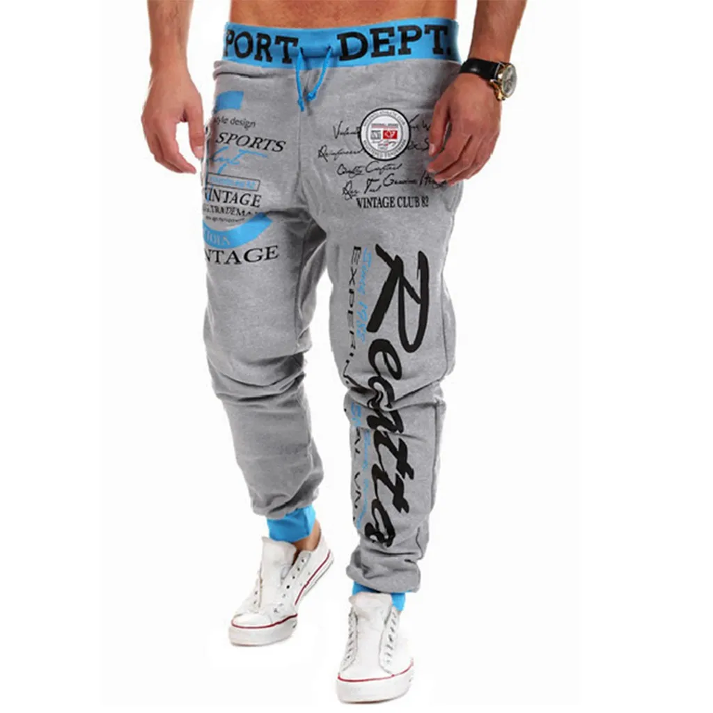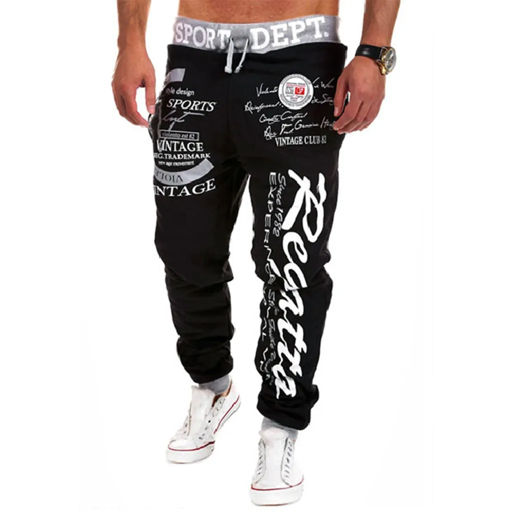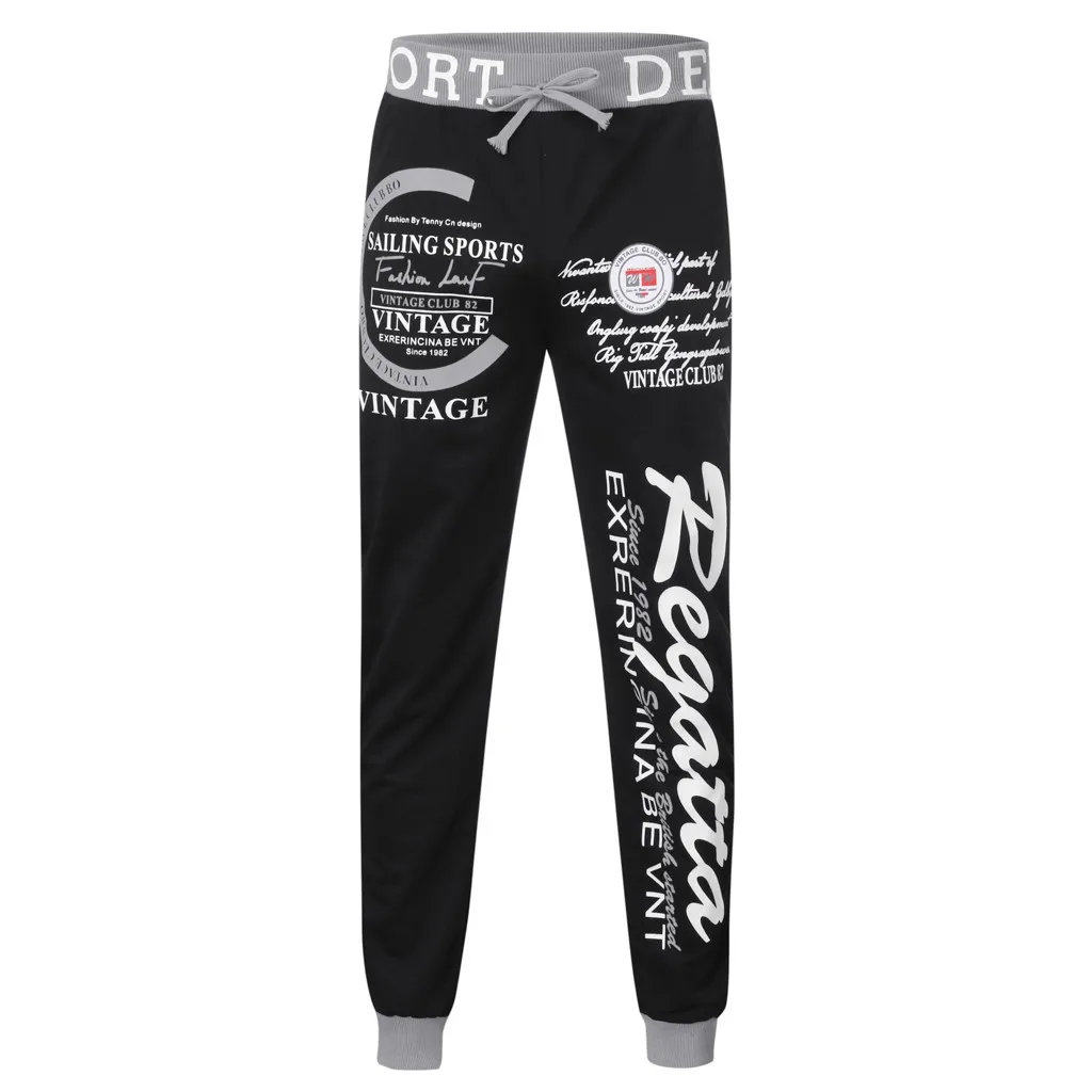 Мужские повседневные свободные брюки с буквенным принтом, длинные брюки на завязках с эластичным поясом