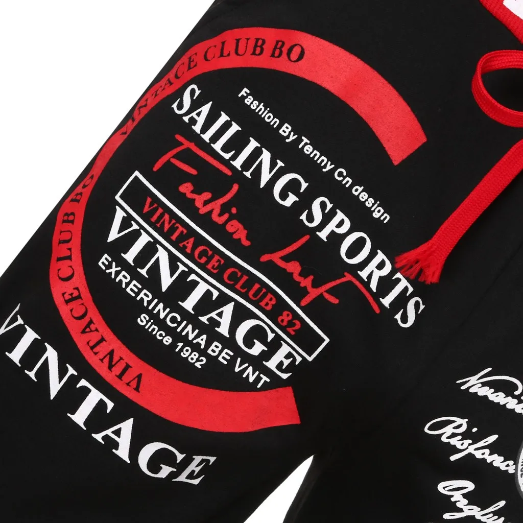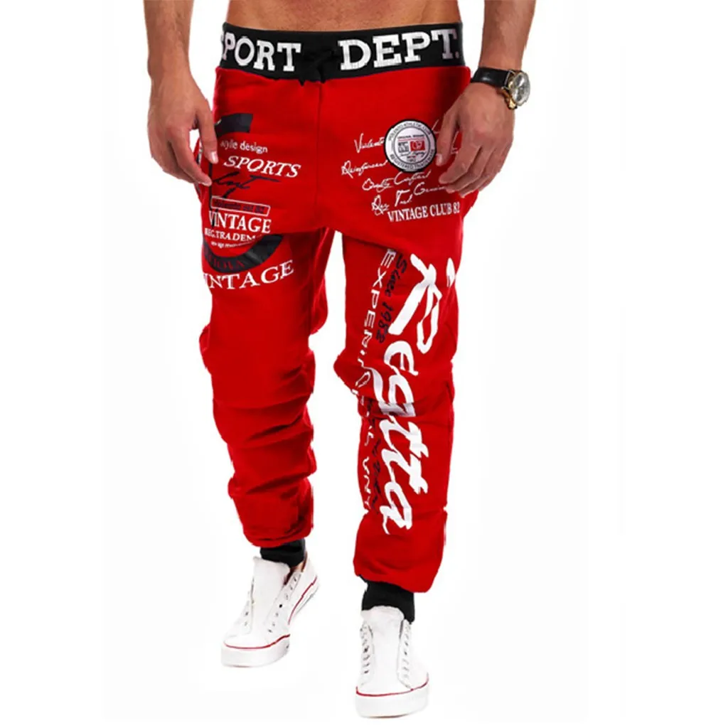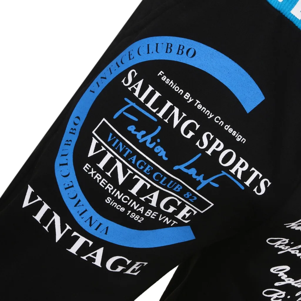Мужские повседневные свободные брюки с буквенным принтом, длинные брюки на завязках с эластичным поясом