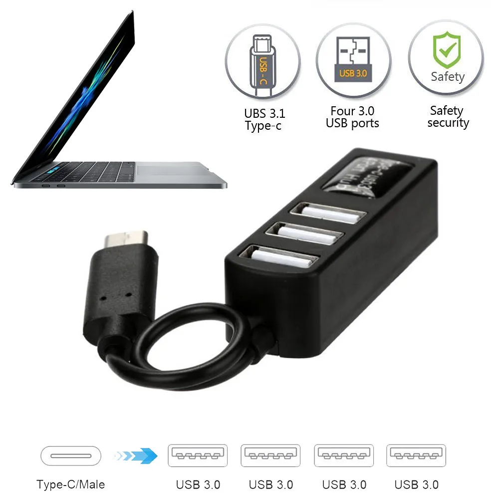 USB-концентратор с Type-C на 4 порта USB 3,0, адаптер USB 3,1 Для MacBook Pro(2016) и других устройств типа C Sup Port ed