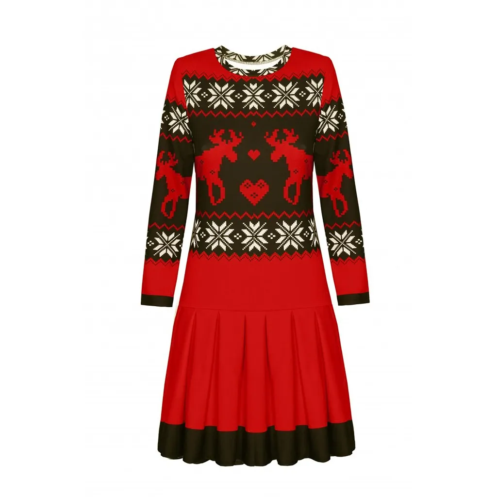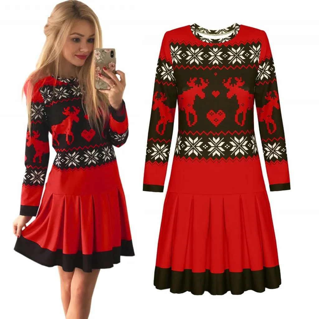 Это рождественское платье с принтом, сочетающее в себе снежинки, лося и елки, подарит вам более приятные ощущения на Рождество, подходящие для вечерних вечеринок.