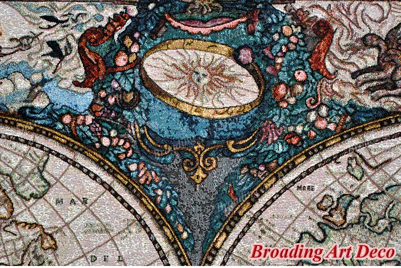 Название гобелена: карта старого мира Высота: 109 см (43 дюйма) Ширина: 140 см (55 дюймов) Вес: 1,2 кг (2,6 фунтов) Материал: хлопок 100% Место происхождения: тканые в Китае Стиль: жаккардового переплетения Стирка: Только сухая чистка Задняя сторона: Полностью на подкладке, с двумя стержневыми карманами сверху и снизу