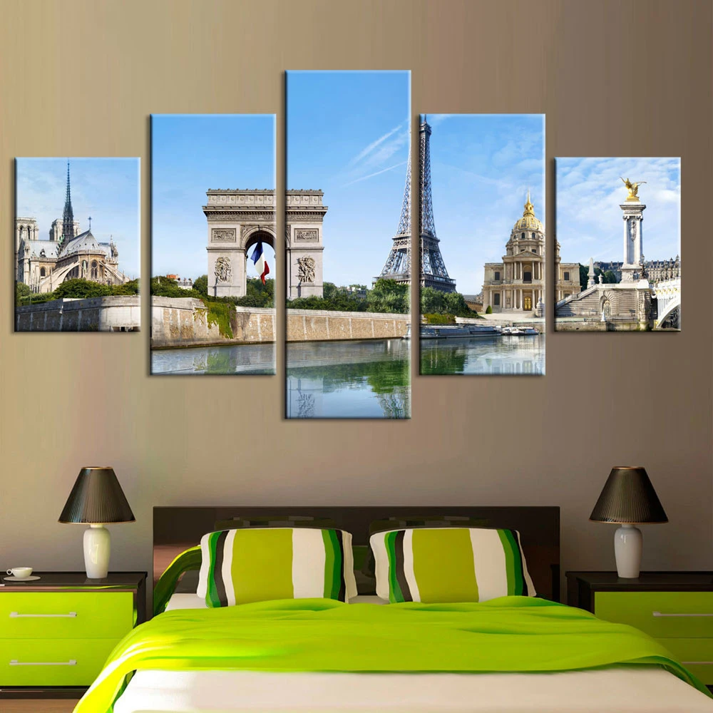Modname = ckeditorМодульные фотографии HD Печать городской здания Холст Картина Пейзаж 5 шт. креативный домашний декор настенная художественная рамка художественное оформление постер