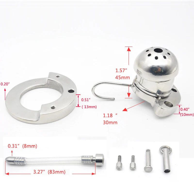 Материал: нержавеющая сталь 316 Эргономичная форма для дискретного и удобного ношения. Есть два вида замков на выбор: 1. Поверните замок с помощью внутреннего шестигранного гаечного ключа 2. Латунный замок с ключами. В комплект входит: 1. Одна клетка. 2. Одно кольцо. 3. Два нестандартных внутренних шестиугольных болта. Используйте их для соединения передней и задней частей. 4. Один внутренний шестигранный гаечный ключ. 5. Один латунный замок с двумя ключами. 6. Один байонетный замок. * Один катетер. (Катетер может быть разобран. Вы можете выбрать то, что вам нравится.) Вес: вес нетто около 475 г/490 г Размеры: Размер клетки: подробно на картинке Размер кольца: Наружный диаметр около 2,95 ''(75 мм) 3 разных Внутренний диаметр: около 1,57 ''/1,77''/1,97 ''(40 мм/45 мм/50 мм), одна клетка поставляется только с одной кольцо. Толщина: мин: около 0,20 ''(5 мм) Макс: около 0,51 ''(13 мм)