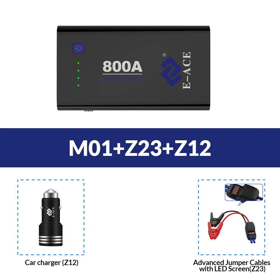 ★【Супер мощный и Mini】Этот компактный (145 мм * 83 мм * 25 мм) и легкий (585 г), но мощный пиковый пусковой механизм 800А не имеет никаких проблем с запуском большинства автомобилей с газовыми двигателями до 4,0 л или дизельными двигателями до 2,4 Л.