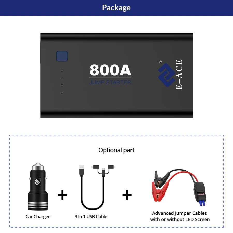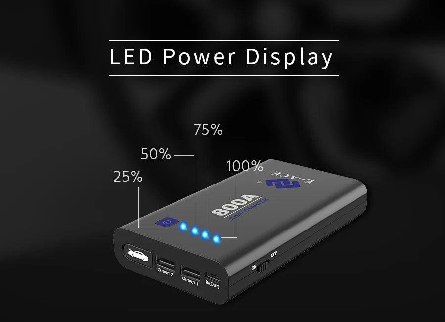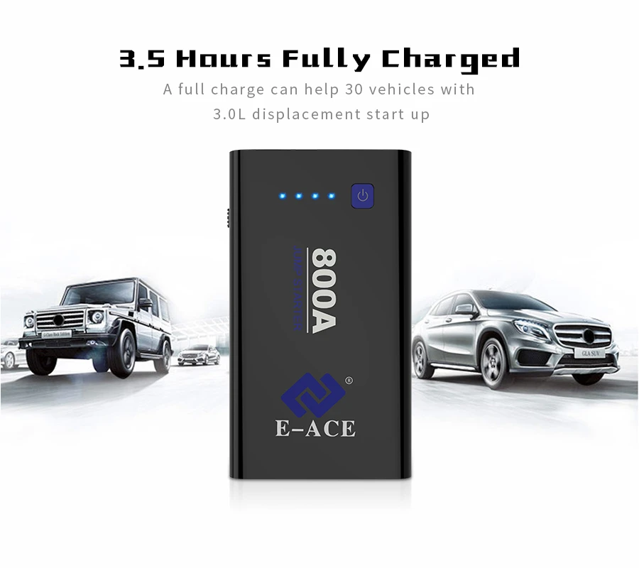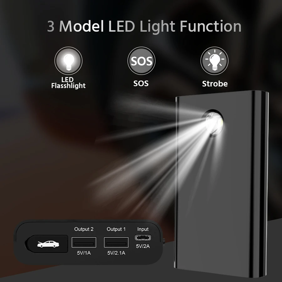Основы для кемпинга на открытом воздухе: Этот стартер со встроенным светодиодным фонариком имеет яркие, стробоскопические и SOS режимы, которые удобны для ежедневного использования, активного отдыха и чрезвычайных ситуаций. В режиме полной зарядки вы можете использовать подсветку в течение 48 часов.